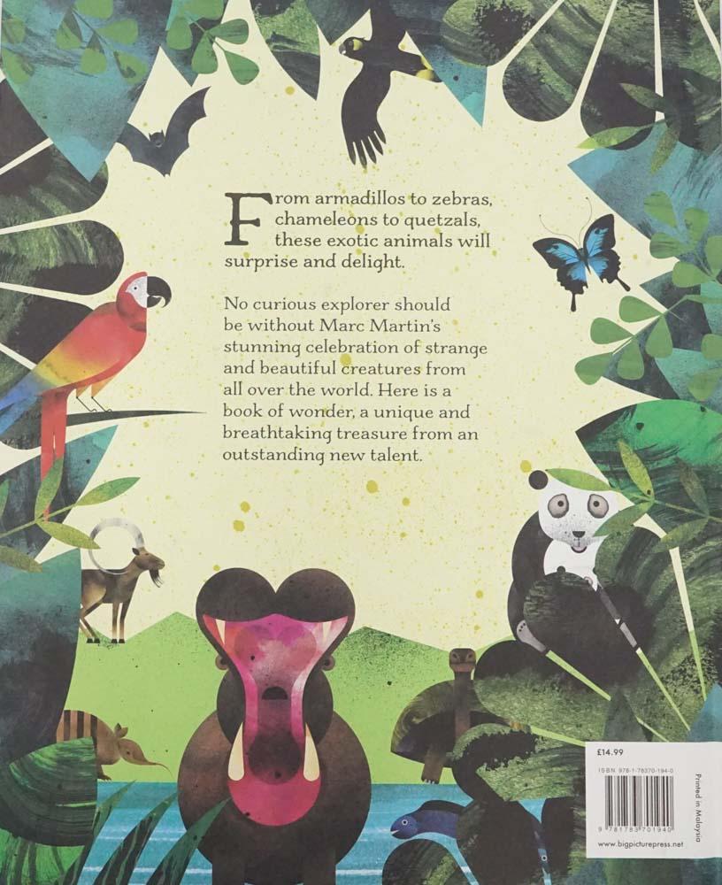 From armadillo to zebras, chameleons to quetzals, these exotic animals will surprise and delight. No curious explorer should be without Marc Martin's stunning celebration of strange and beautiful creatures from all over the world. Here is a book of wonder, a unique and breathtaking treasure from an outstanding new talent.