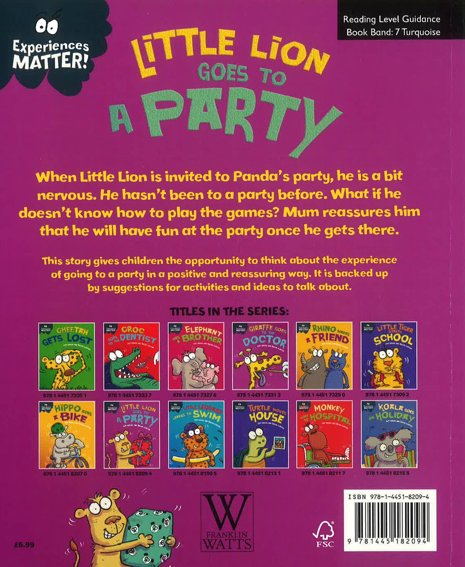 Little Lion has been invited to Panda's party. He is a bit excited, but he is worried about it too. What if he doesn't know many people there? What if he doesn't know how to play the games? Luckily, his family are on hand to help him overcome his fears.