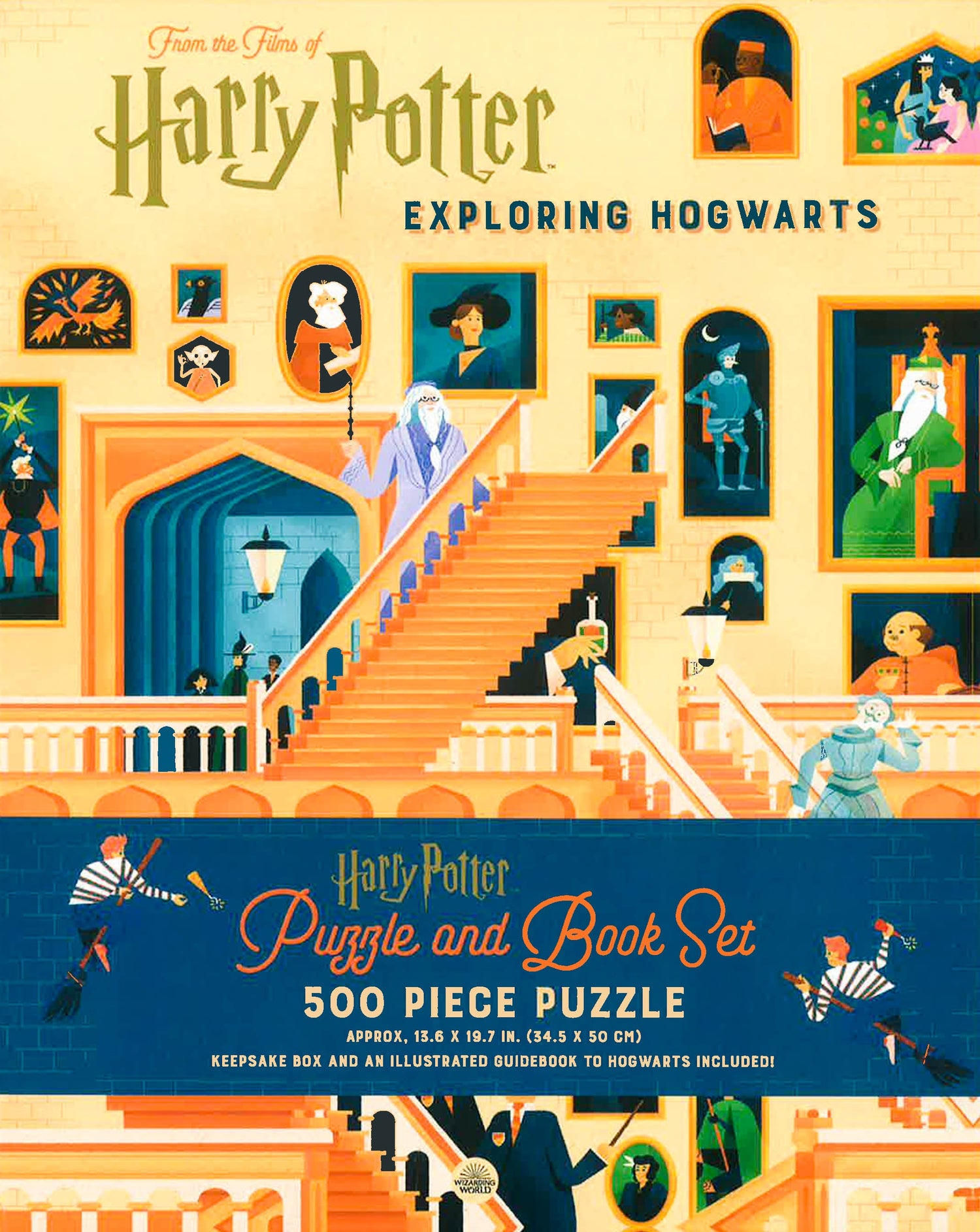 Designed like a classic hardcover book, this keepsake box with magnetic closures contains a 500-piece puzzle featuring a vibrant, detailed illustration of Hogwarts’ iconic moving staircases by acclaimed Studio Muti. After the puzzle is assembled, use the deluxe collectible box again and again to trap rogue Cornish Pixies, hide Horcruxes, or store your wallet and keys. This set also includes a 32-page excerpt of the bestselling book Harry Potter: Exploring Hogwarts: An Illustrated Guide that gives fans an illustrated tour of the Hogwarts grounds.