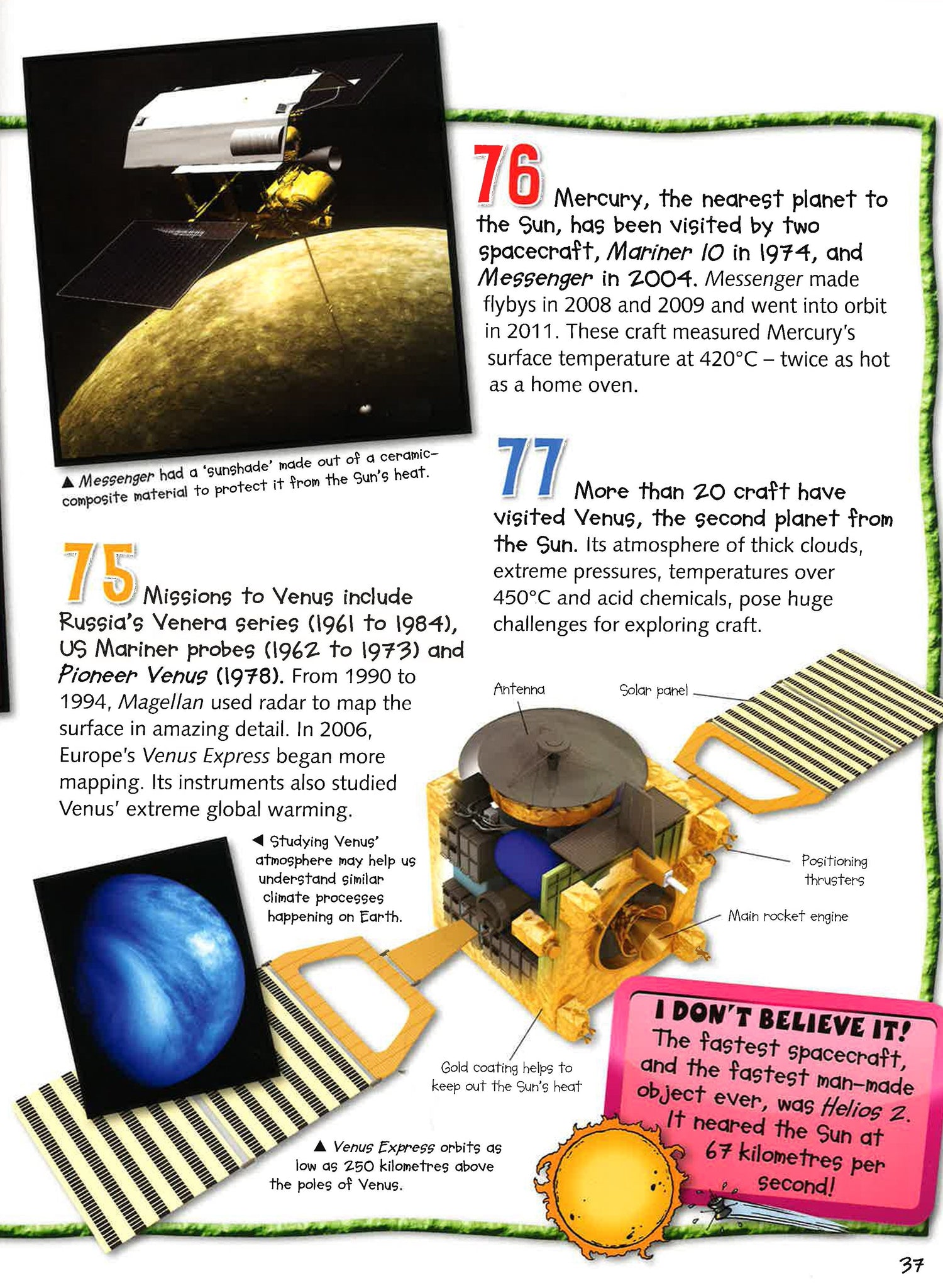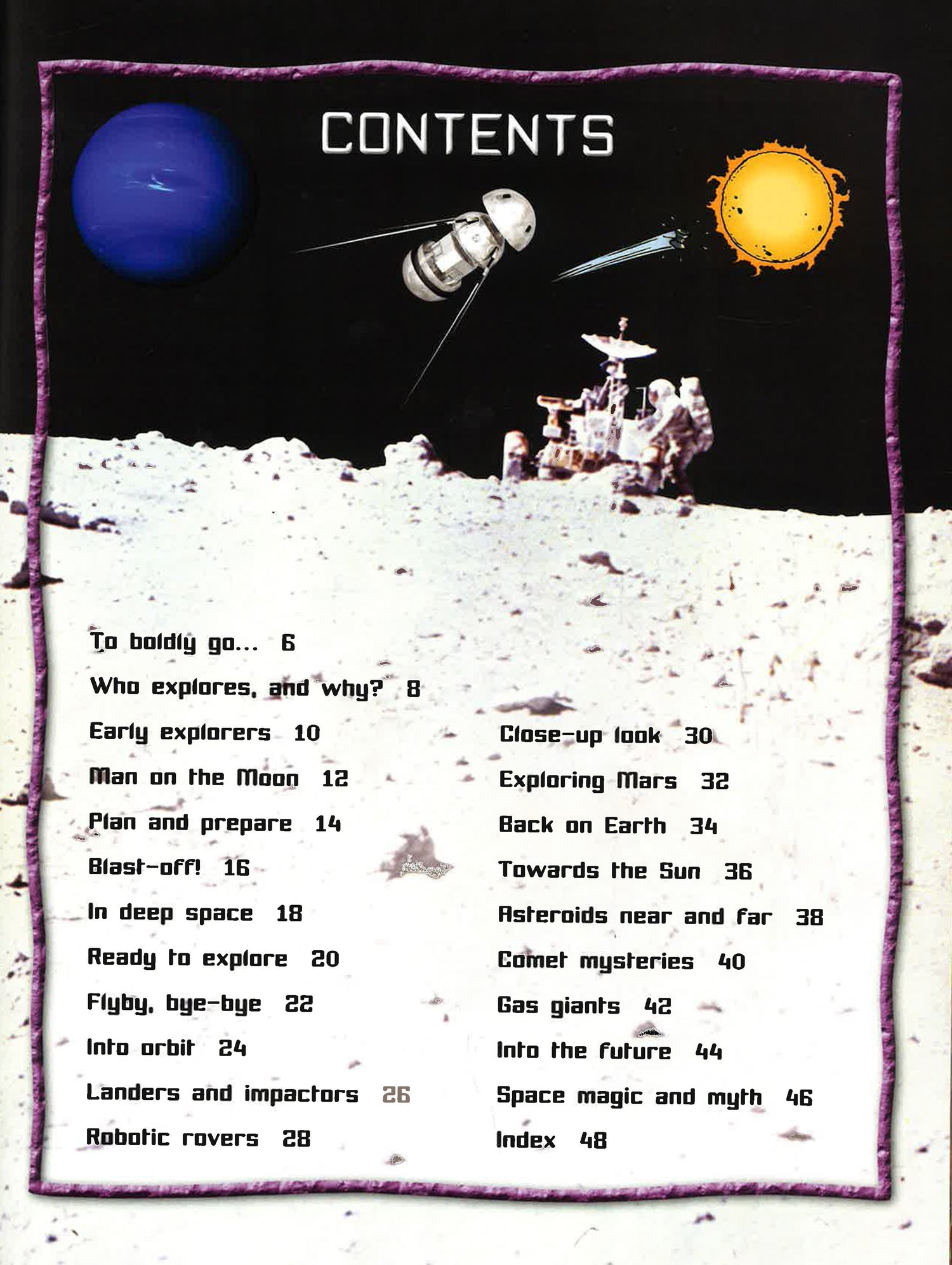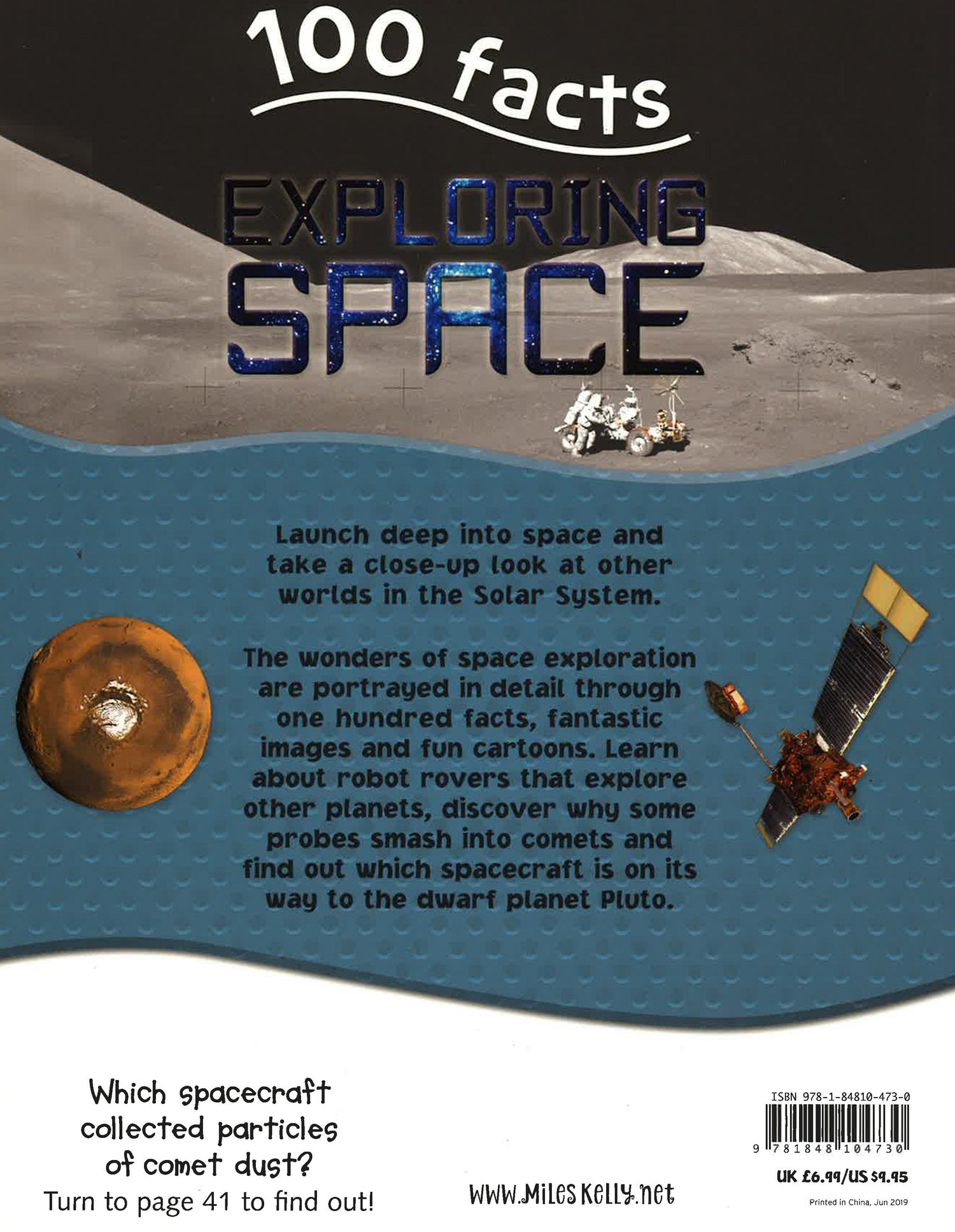 Launch deep into space and take a close-up look at other worlds in the Solar System. The wonders of space exploration are portrayed in detail through one hundred facts, fantastic images and fun cartoons. Learn about robot rovers that explore other planets, discover why some probes smash into comets and find out which spacecraft is on its way to the dwarf planet Pluto.