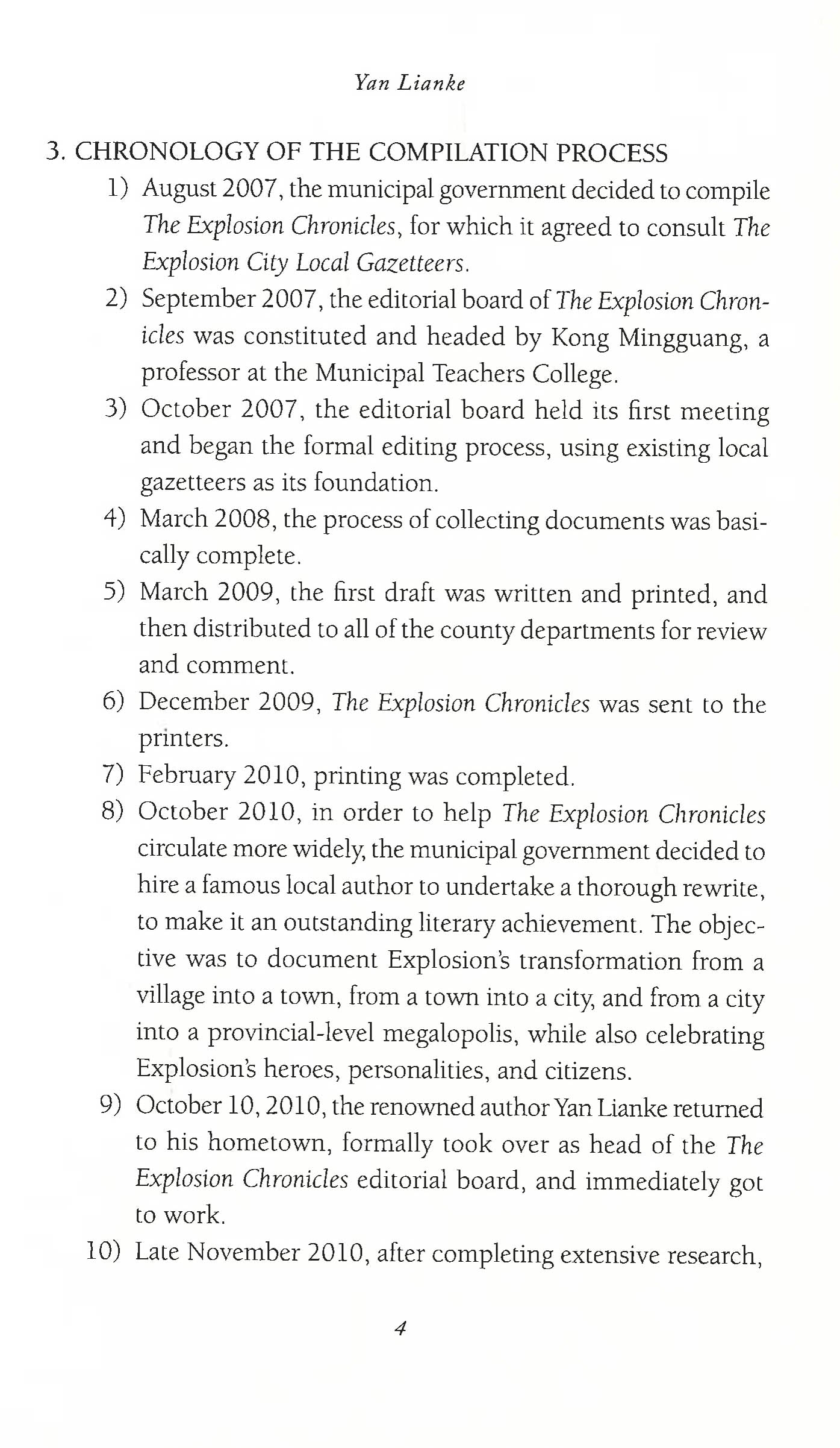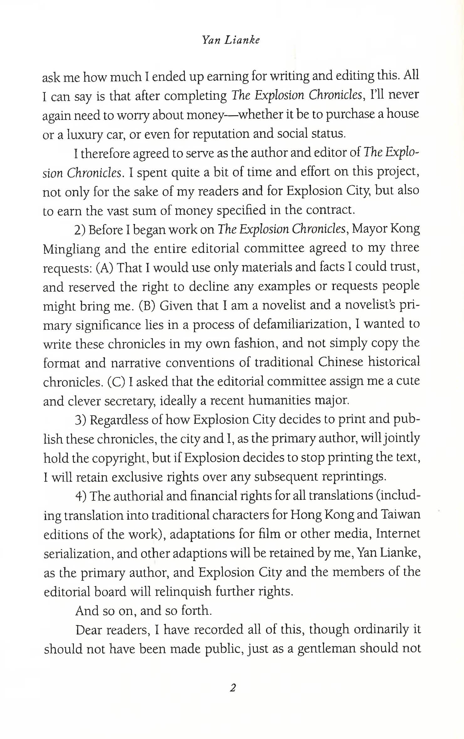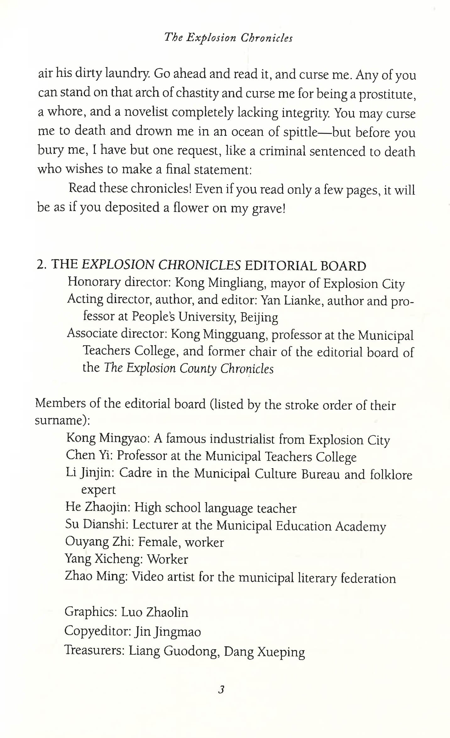 Man Booker International finalist Yan Lianke has been lauded for his imaginative satire and insightful cultural critique as "one of China's greatest living authors" (Guardian). His internationally bestselling new novel, The Explosion Chronicles, follows the excessive expansion of a rural community from small village to megalopolis. With the Yi River on one side and the Balou Mountains on the other, the village of Explosion was founded more than a millennium ago by refugees fleeing a seismic volcanic eruption. But in the post-Mao era the name takes on a new significance as the community grows explosively from a small village to a vast metropolis. Behind this rapid expansion are members of the community's three major families, including the four Kong brothers; Zhu Ying, the daughter of the former village chief; and Cheng Qing, who starts out as a secretary and goes on to become a powerful political and business figure. Linked together by a complex web of loyalty, betrayal, desire, and ambition, these figures are the driving force behind their hometown's transformation into an urban superpower.