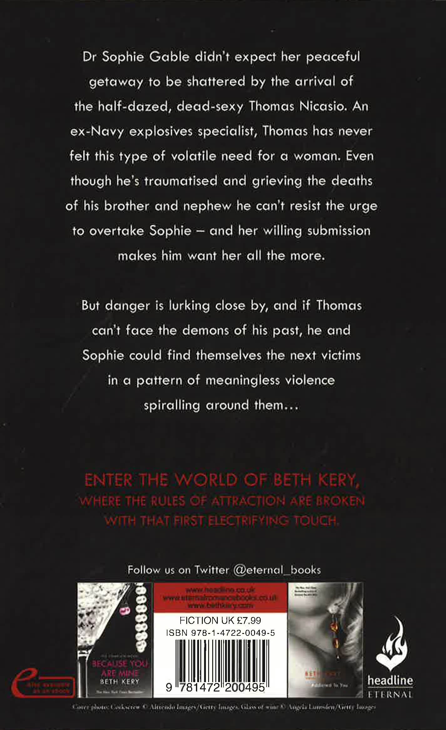 A emotionally gripping and erotically charged tale of romantic suspense from the author of Because You Are Mine. Dr. Sophie Gable wasn't expecting the peace of her private getaway to be shattered by the arrival of a half-dazed, dead-sexy guest. Thomas Nicasio has obviously been traumatised, and Sophie thinks she knows by what. There's something about Thomas's father that he can't - or won't - remember. Something that could get them both killed. Still, she can't resist Thomas's electrifying seduction...or her instincts to help him... An ex-Navy explosives specialist, Thomas has never felt this type of volatile need for a woman. Even while he's grieving the deaths of his brother and nephew, something about Sophie makes Thomas want to overtake her... and each time he does, her willing submission makes him want her all the more. But danger is lurking close by, and if he can't face the demons of his past, both he and Sophie could be the next victims in a pattern of meaningless violence...