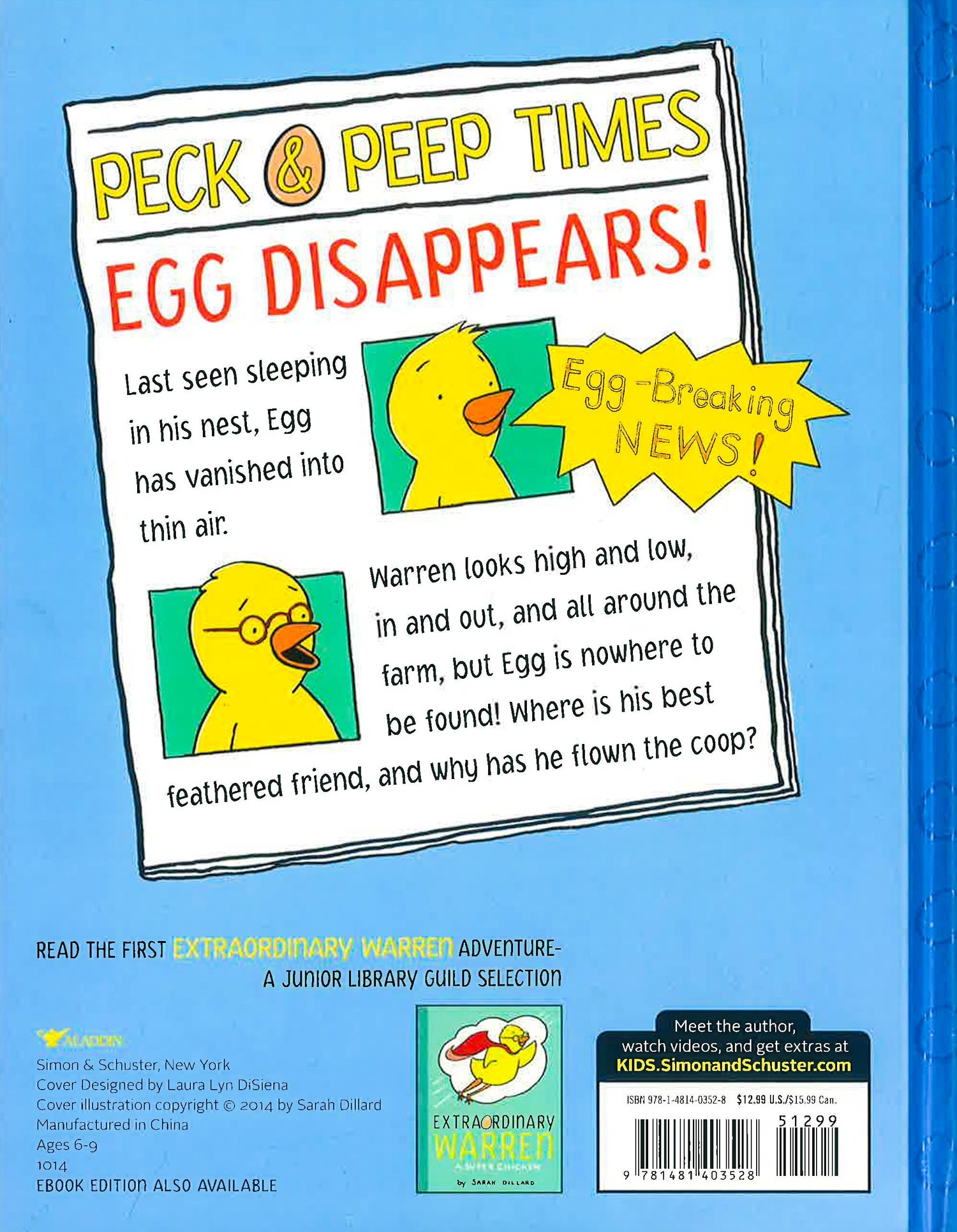 Delightfully quirky chicken Warren and his sidekick Egg embark on dual adventures when Egg decides to cross the road in this follow-up to Extraordinary Warren, which Publishers Weekly called "a good-humored story that nicely blends picture book, chapter book, and graphic novel elements." Warren, the bespectacled hero of Extraordinary Warren, is delighted to have a sidekick and feathered friend in the newly hatched Egg. But Egg is rather exasperating. New to the world, he asks so many questions and has so much to learn. Early one morning Egg takes off on his own and crosses the road, where he winds up getting lost in a field of corn. Warren is so busy imagining his flight to the moon that he doesn't even know Egg is missing! But when Warren finally realizes Egg has flown the coop, nothing stops him from locating his best buddy--not even that hungry rat, Millard. Filled with simple text, speech balloons, and engaging illustrations, this easy-to-follow story is a blend between a picture book and a chapter book, making it an ideal bridge for independent readers.