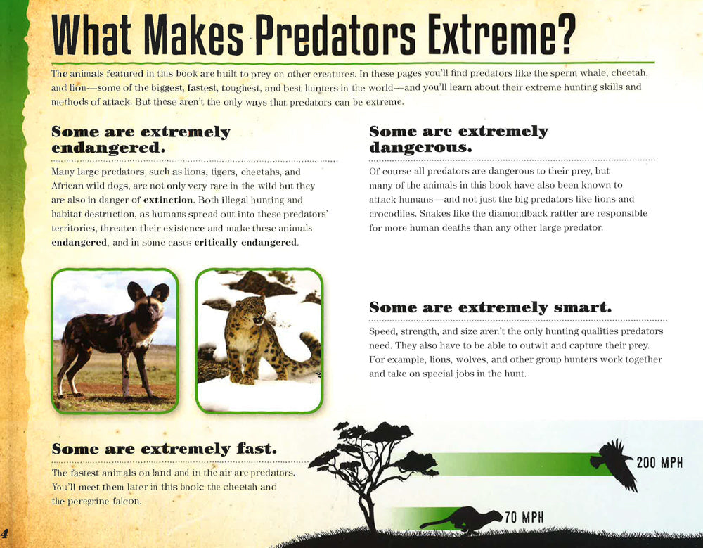 Venture into the wilderness to learn about the most extreme and dangerous predators on the planet. Embark on a journey around the world and discover the most extreme predators on the planet. Extreme Animals: Predators features 20 dangerous creatures that awe us with their feats of strength, speed, and sheer determination. Detailed facts, statistics, charts, and maps allow the reader to compare and contrast each animal and learn what makes them so extreme. Three replica claw pendants with a neck cord enable kids to display their favorite beasts after the book is closed, and a double-sided wall poster is the perfect decoration for a budding adventurer's bedroom.