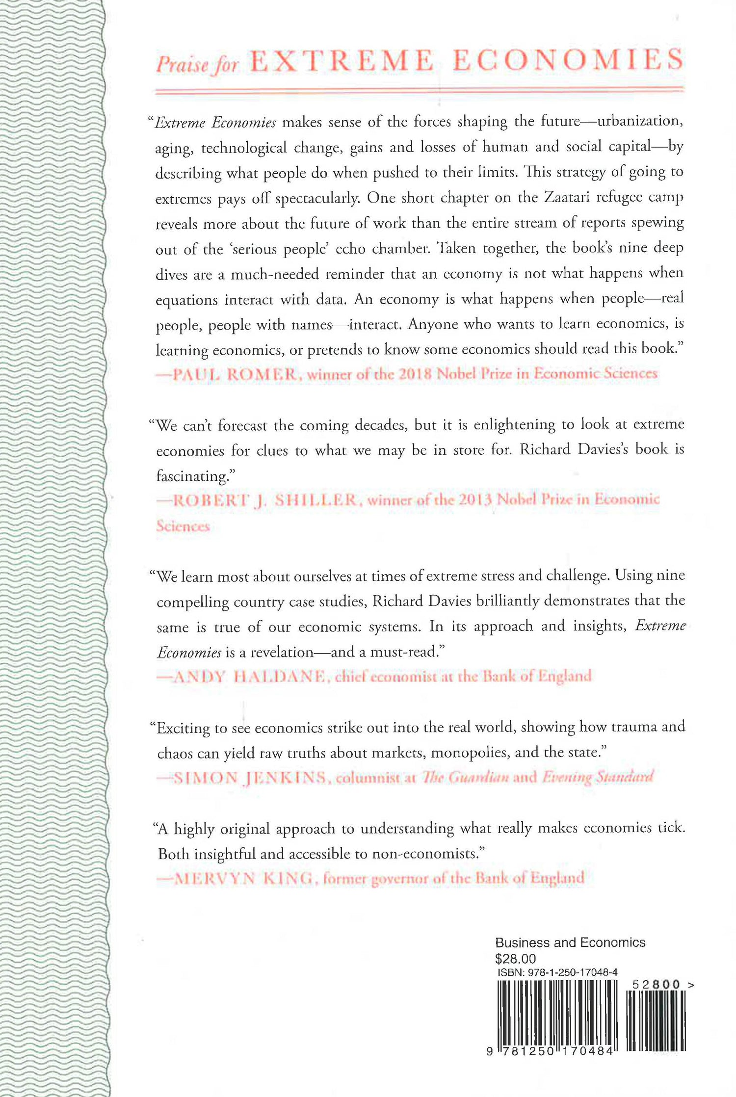To predict our future, we must look to the extremes. So argues the economist Richard Davies, who takes readers to the margins of the modern economy and beyond in his globe-trotting book. From a prison in rural Louisiana where inmates purchase drugs with prepaid cash cards to the poorest major city on earth, where residents buy clean water in plastic bags, from the world's first digital state to a prefecture in Japan whose population is the oldest in the world, how these extreme economies function--most often well outside any official oversight--offers a glimpse of the forces that underlie human resilience, drive societies to failure, and will come to shape our collective future.