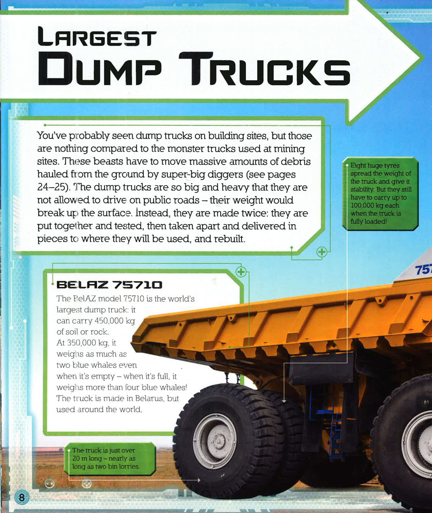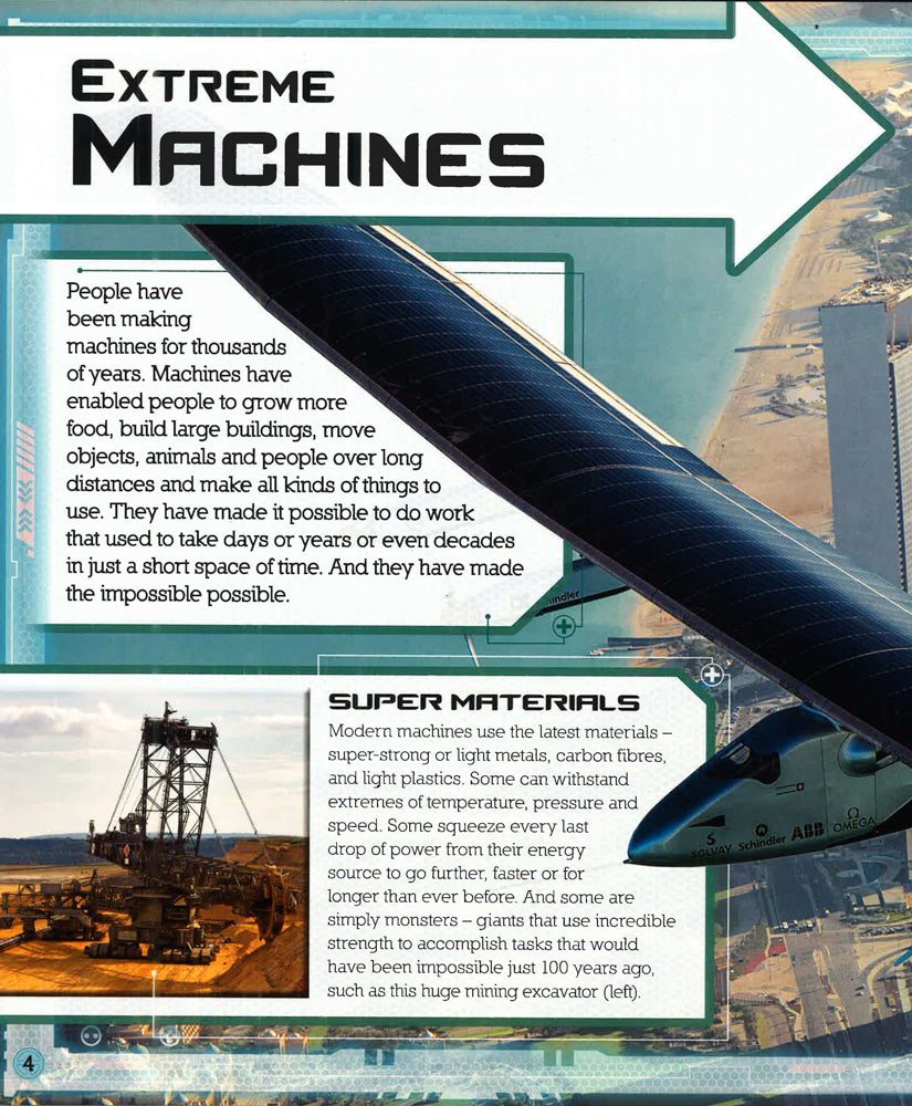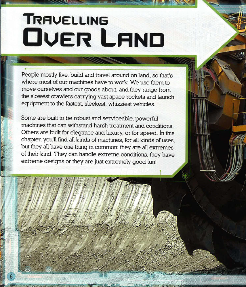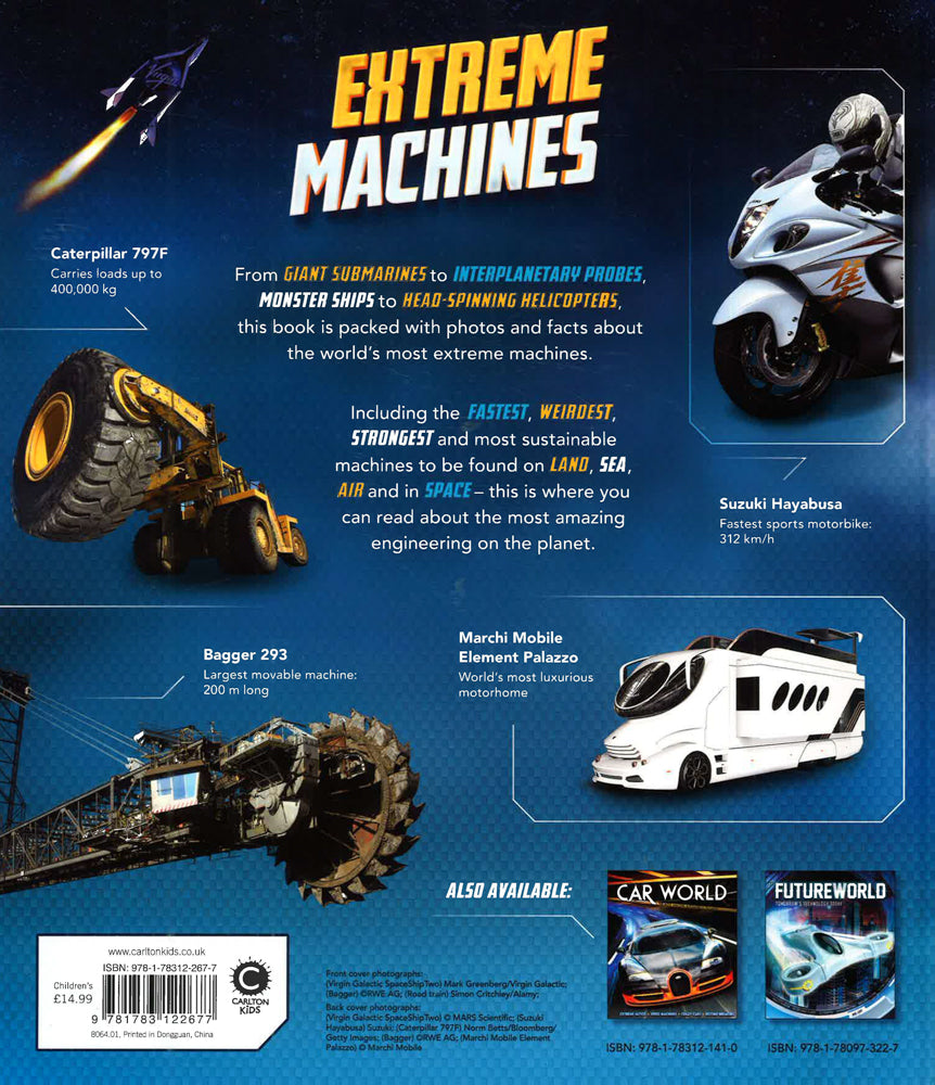 Fastest. Biggest. Weirdest. From ultra-luxurious motorhomes and mining giants to gigantic spaceship-carrying transporters and the Large Hadron Collider, this eye-popping book features everything young readers want to know about the most amazing machines on the planet! With bite-size fact panels and incredible action photography of such contraptions as the powerful road train and big diggers, Extreme Machines is guaranteed to keep gadget-mad kids spellbound.