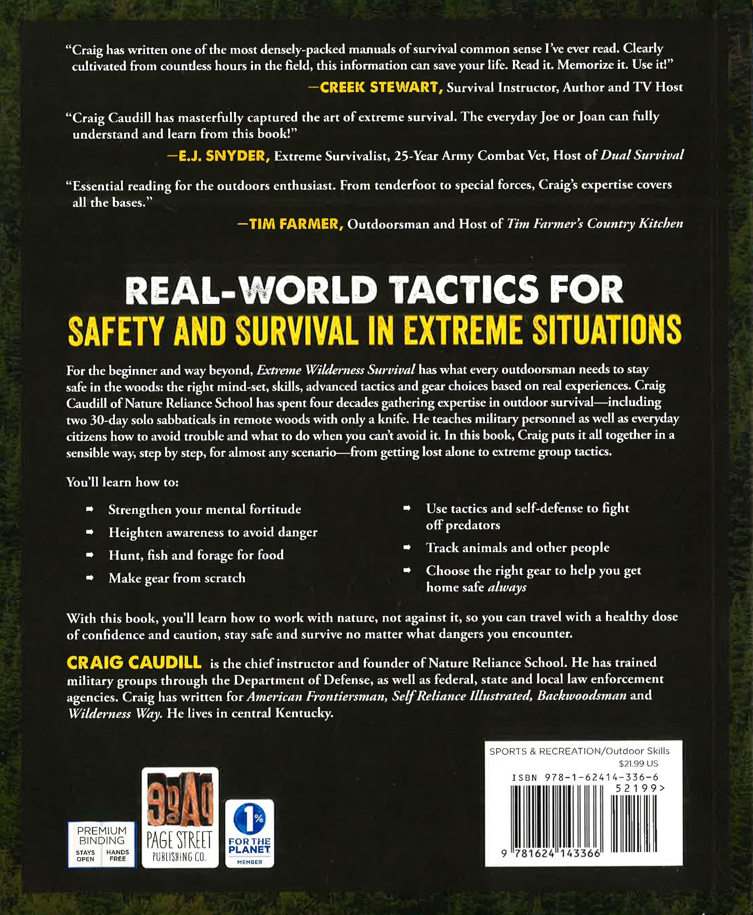 Extreme Wilderness Survival is a compilation of the real-life tactics that wilderness instructor Craig Caudill has built and really used, especially during two nature sabbaticals when he lived in the woods for nearly 30 days with only a knife. Through his extensive training with some of the best martial artists in the country and his experience as the chief instructor at Nature Reliance School, Craig has become a go-to expert in the outdoor survival community. In the book, he first teaches readers the most important safety tactic - how to set the right mentality and awareness before heading outside. Craig then teaches about basic survival needs and how to meet them depending on whether you have reliable man-made gear or no gear. He covers navigation, self-defense, shelter and warmth, water and food. Each chapter starts with a true story of outdoor adventure gone right or wrong, analysing what should have been done differently. The book covers the basics for outdoor enthusiasts who want to stay safe but have limited survival knowledge. It then dives into tactics for those ready for more advanced wilderness survival long-term, either solo or in a group.