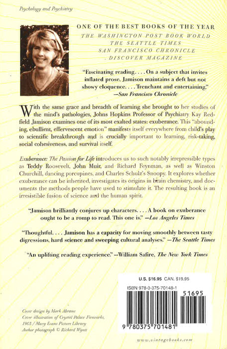 With the same grace and breadth of learning she brought to her studies of the mind’s pathologies, Kay Redfield Jamison examines one of its most exalted states: exuberance. This “abounding, ebullient, effervescent emotion” manifests itself everywhere from child’s play to scientific breakthrough.