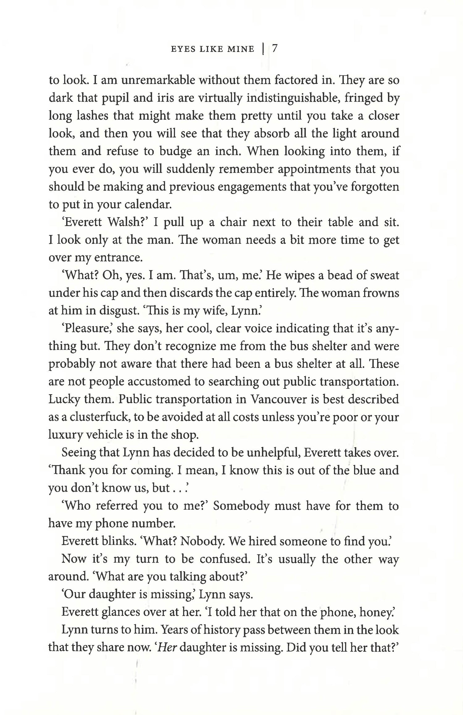 'A brave, unflinching heroine and brave, unflinching writing adds up to an extraordinary debut - highly recommended' LEE CHILD 'Utterly compelling, rich with voice and psychological insight, populated with heartbreakingly real characters, Eyes Like Mine will stay with you for a long, long time. Perhaps forever' JEFFERY DEAVER It's late. The phone rings. The man on the other end says his daughter is missing. Your daughter. The baby you gave away over fifteen years ago. What do you do?