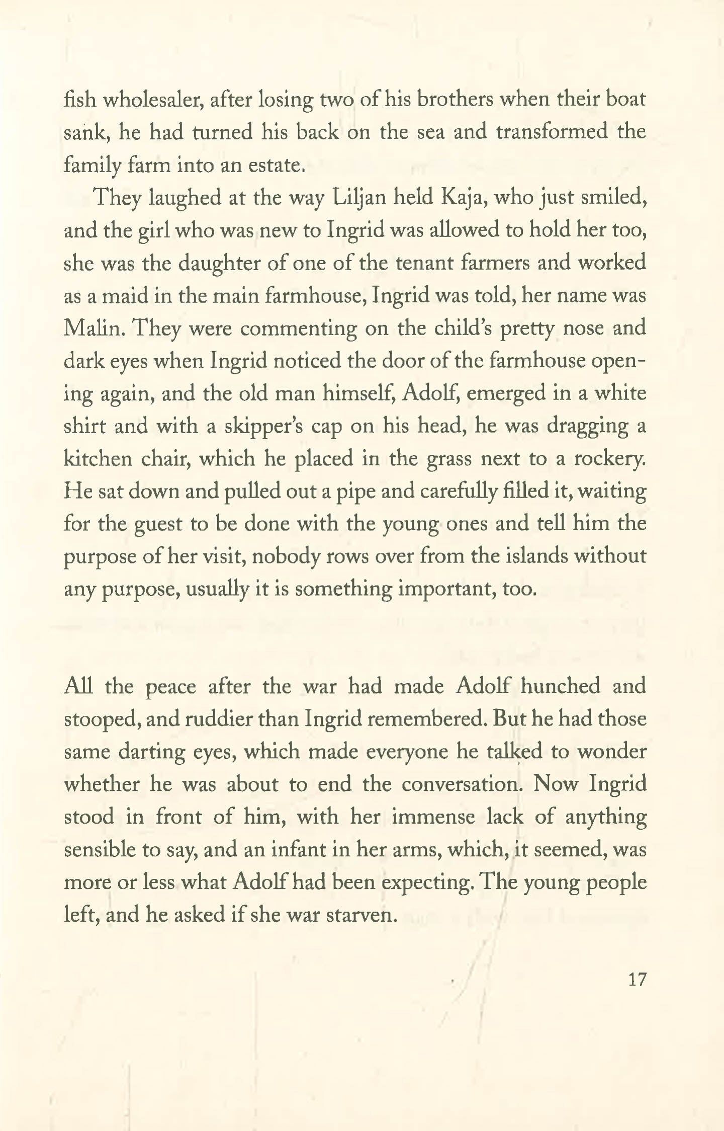 Alexander, the Russian captive who survived the sinking of prisoner ship the Rigel and found himself in Ingrid's arms, made an attempt to cross the mountains to Sweden. Ingrid will follow in his footsteps, carrying her babe in arms, the child's dark eyes the only proof that she ever knew him.