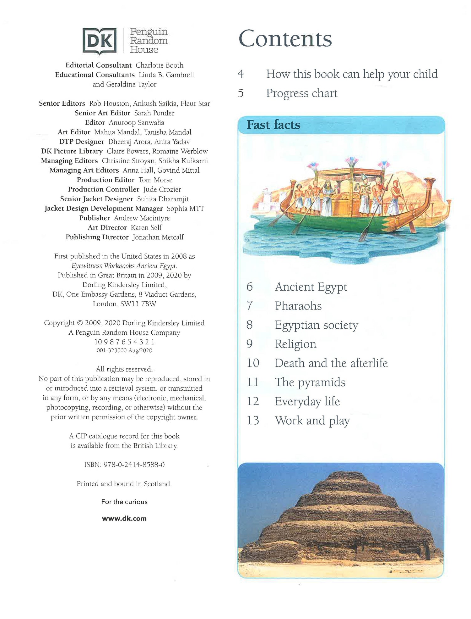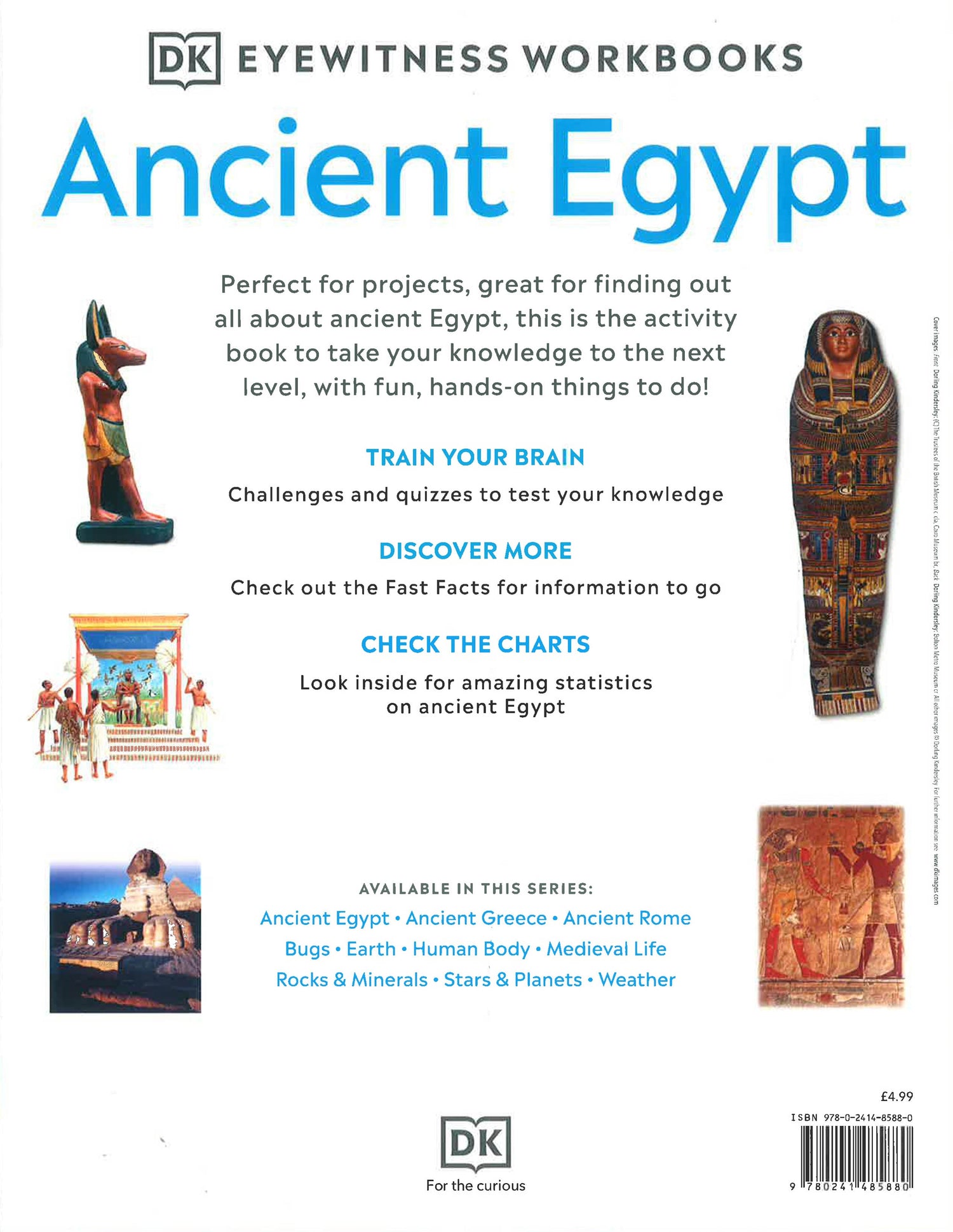 Some subjects are too interesting to be left at school! Carry on your love of history at home with Ancient Egypt - an activity-packed guide to one of history's most fascinating civilizations. Divided into sections, the book starts with fast facts on topics including the pharaohs, the afterlife, religion, and the pyramids; and the book ends with charts of famous Egyptian gods and rulers. Using this information, you can complete the puzzles in the main part of the book, plus there are hands-on activities such as designing a mummy's case and writing in hieroglyphs. Finally, test your new-found knowledge with the quick quizzes (with answers supplied, but no peeking!). You can keep track of your achievements throughout with a star-chart to fill in every time you finish a page.Note to parents: The Eyewitness Project Book series is devised and written with the expert advice of educational and reading consultants and is designed to appeal to children aged 8 years and up. First published in 2007-2009, this series has been fully revised and updated for 2020.
