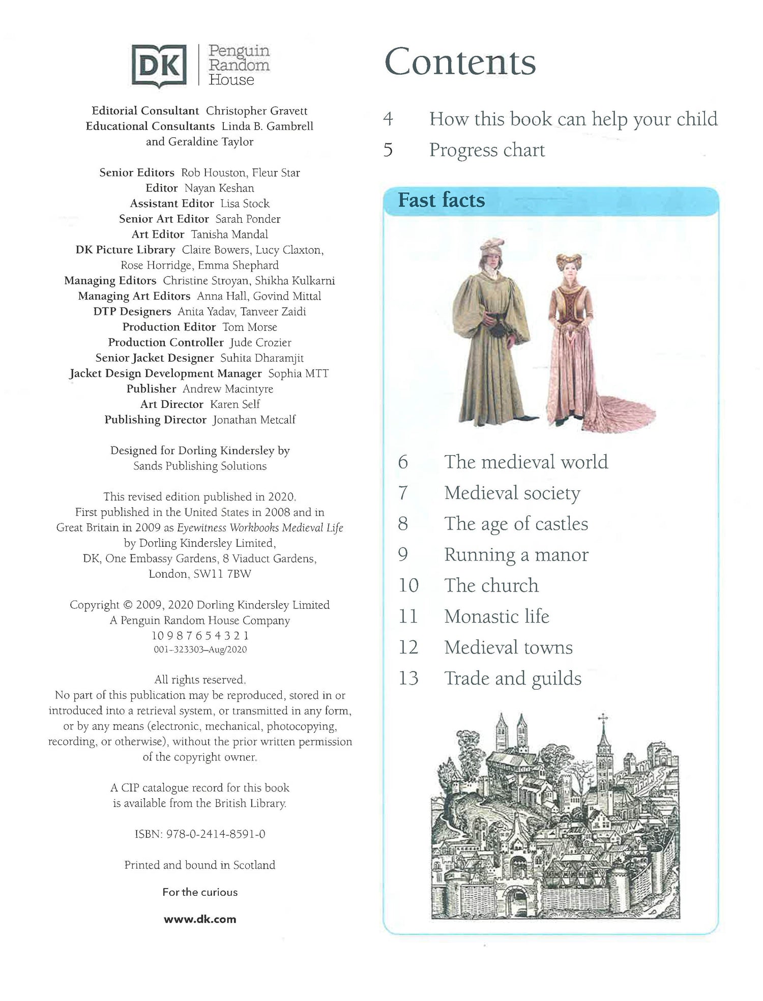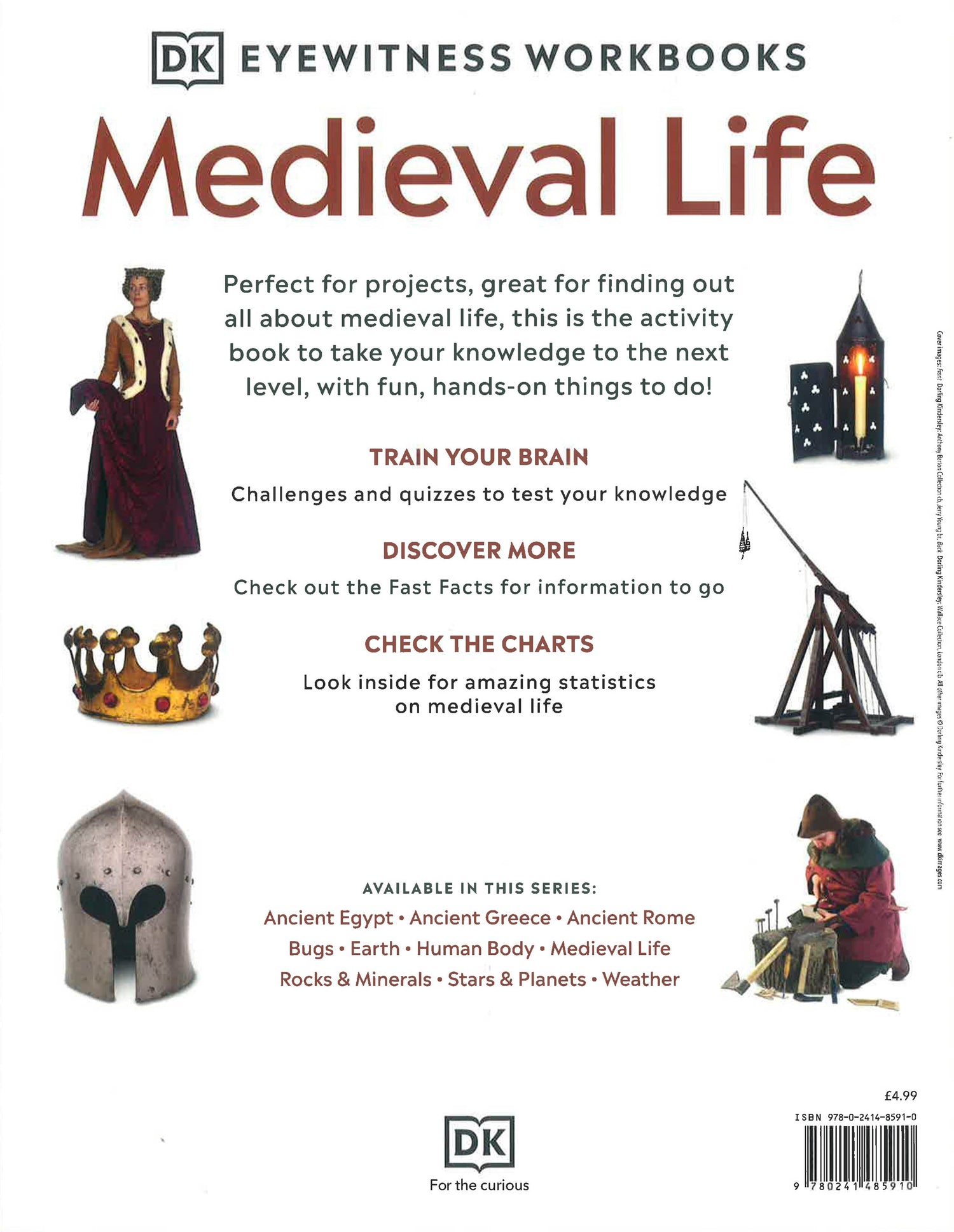 Some subjects are too interesting to be left at school! Carry on your love of history at home with Medieval Life - an activity-packed exploration of life in the Middle Ages.Divided into sections, the book starts with fast facts on topics including castles and knights, running a manor, feudalism, monastic life, and the church; and the book ends with charts of famous medieval people and rulers. Using this information, you can complete the puzzles in the main part of the book, plus there are hands-on activities such as designing your own shield using heraldry, making a "stained glass" window, and playing the medieval game of Fox and Geese. Finally, test your new-found knowledge with the quick quizzes (with answers supplied, but no peeking!). You can keep track of your achievements throughout with a star-chart to fill in every time you finish a page.Note to parents: The Eyewitness Project Book series is devised and written with the expert advice of educational and reading consultants and is designed to appeal to children aged 8 years and up. First published in 2007-2009, this series has been fully revised and updated for 2020.