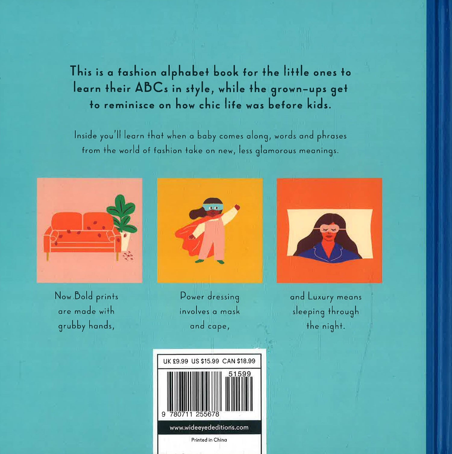 F is for Fashion, Darling is a tongue-in-chic introduction to all things cute couture, an ode to the new parent looking to give their baby a strutting start on the important things in life. This book will take you from A to Z through the most iconic words and phrases from the world of fashion. But the words and phrases spoken on catwalks and in boutiques have new meanings for new parents: Bold prints are made by grubby hands, Power dressing involves a mask and cape, and Luxury is being able to sleep through the night...Babies and toddlers will love playing with this classic board book and exploring the bright, popping artworks that illustrate each letter of the alphabet in not-so-serious style. Grown-ups will be just as entertained by the knowing nods to the experience of being a new parent. F is for Fashion, Darling is perfect for anyone juggling the joy of parenthood with the responsibility of being a fashion icon. This book is your chance to become the chicest parent at playgroup. That's fashion, darling.