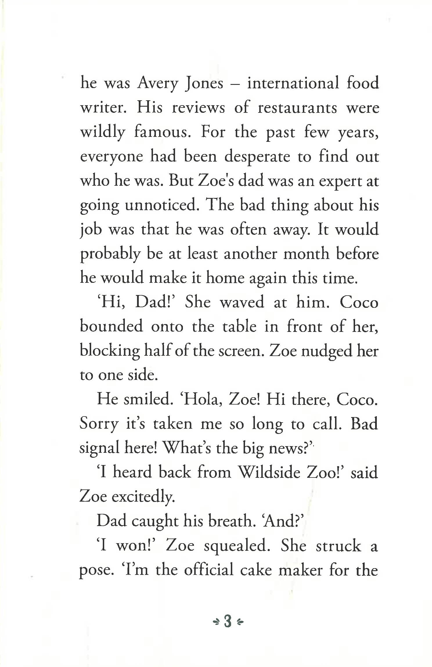 Zoe Jones is Zinnia Jakes, a nine-year old secret pastry chef! She makes the tastiest and most wonderful cakes. Together with her magical cat, Coco, her best friend Addie and her aunty Jam, they get into incredible adventures.