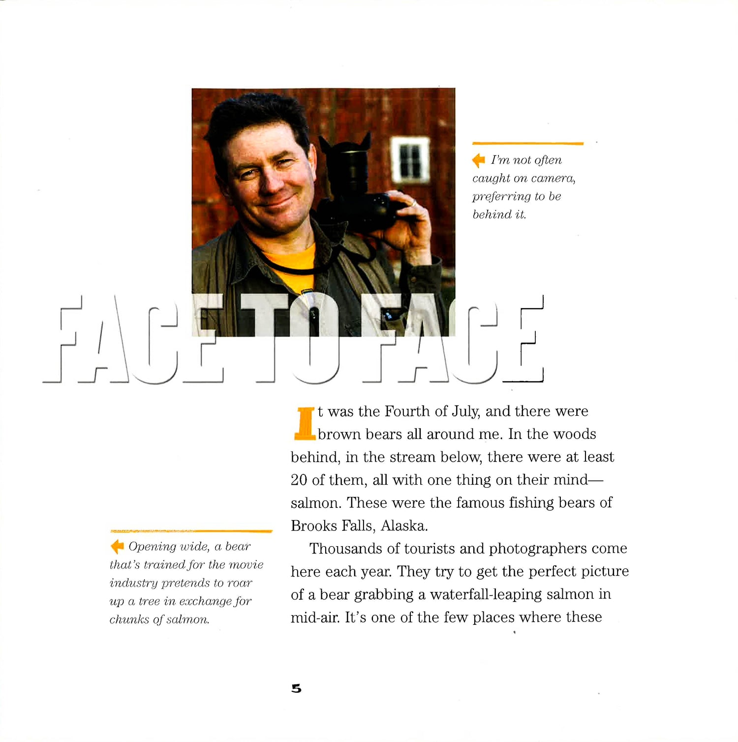 Ever been face-to-face with a grizzly bear? Joel Sartore has—and he lived to tell this and other great tales in Face to Face with Grizzlies. Through stunning photography and engaging storytelling, this National Geographic expert takes you into the bears' world. Witness a mother bear charge a human intruder. Watch male bears battle. Find out the grizzly's idea of a fast-food take-out.Joel Sartore invites young readers to coexist with this fearsome bear. With practical "how-to" sidebars, he shares secrets of photographing the bears in the field, tells how to find out more about their plight, and shows how we can all help in their fight for survival. Along with his vast experience and knowledge, Joel Sartore's contagious passion for the grizzly shines through every page of this fascinating book.