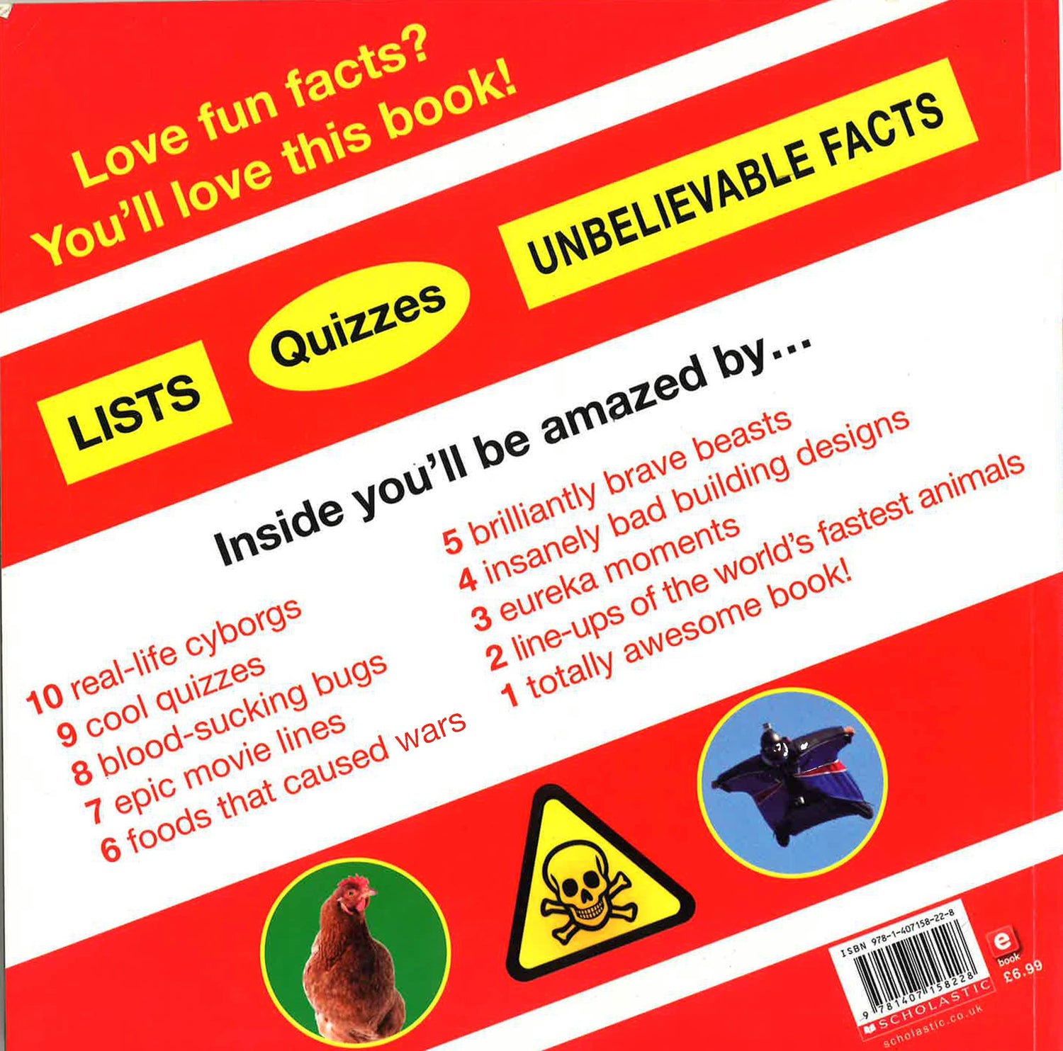 FACTFEED... is an awesome book of lists, reinvented for the YouTube and Buzzfeed generation. Find out the coolest animal facts, the most unbelievable science info and amazing 'did you know' details about everyday life. Including: - the 10 most disgusting parasites - 8 ways that plants 'think' - 10 cool ways your body defends itself - the 10 weirdest bits of space junk - 10 gross lunch boxes from around the world - 10 cool robots - 5 ways social media is rewiring your brain