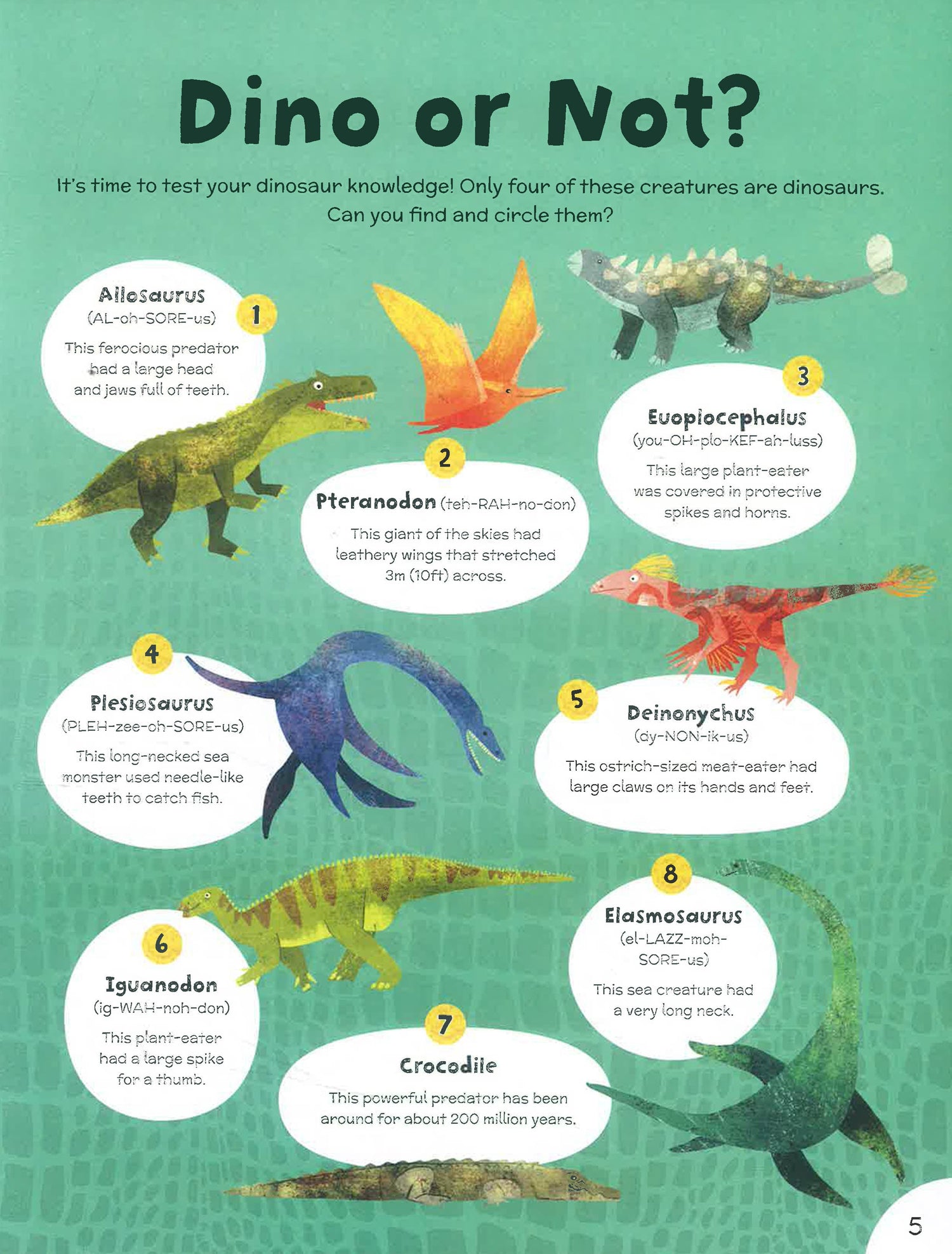 This beautifully illustrated book brings together exciting facts, engaging puzzles, and entertaining press-out activities. Follow a maze to learn about dinosaur diets; read about T. rex's teeth, make a model Tyrannosaur for your tabletop; then finish a picture with help from the dino stencils. Informative, interactive pages packed with puzzles and games make this a wonderful introduction to the prehistoric period. Designed for dino fans aged 6 and up.