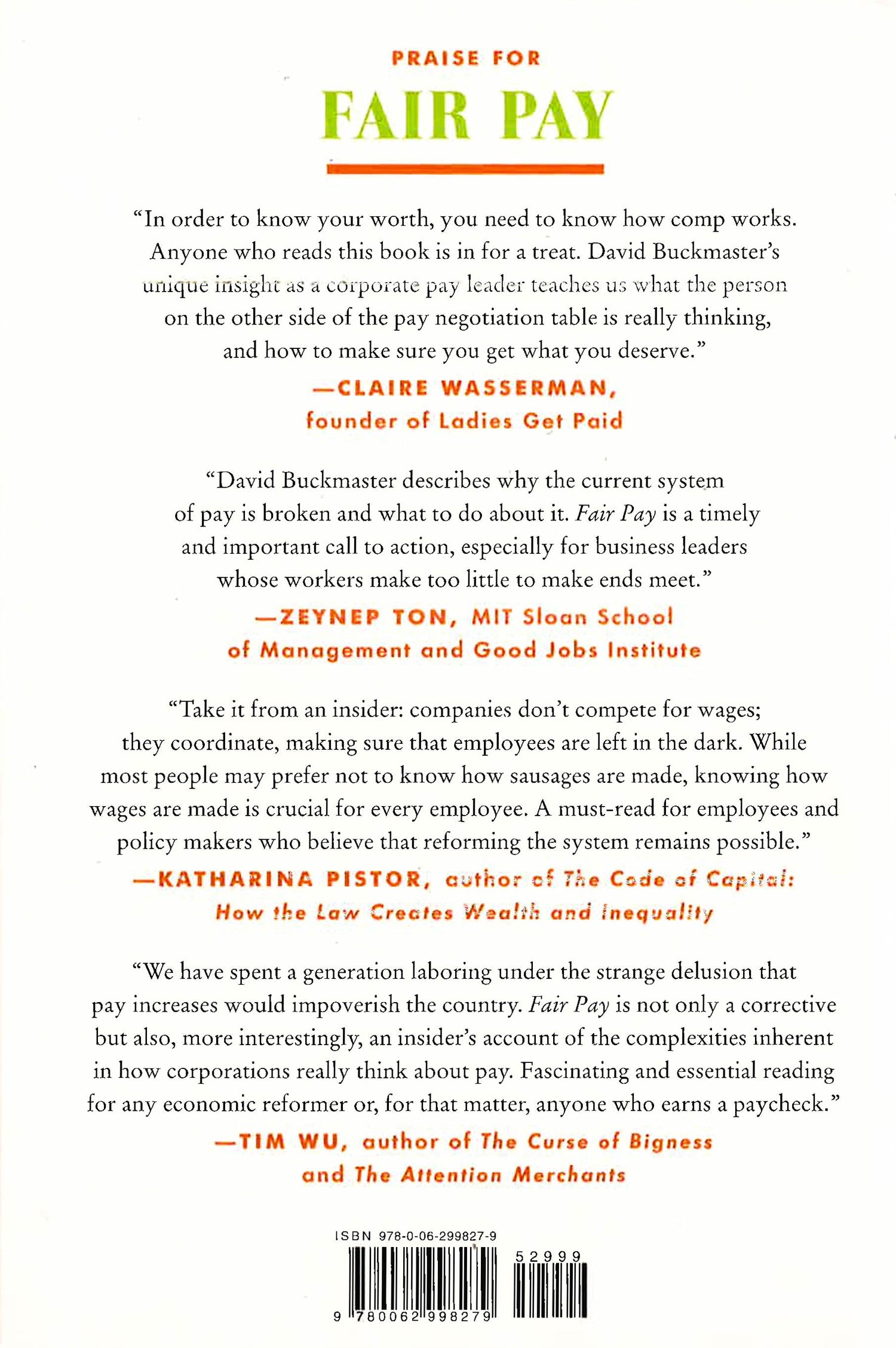 Longlisted for the 2021 Porchlight Business Book Awards, Management & Workplace CultureAn expert takes on the crisis of income inequality, addressing the problems with our current compensation model, demystifying pay practices, and providing practical information employees can use when negotiating their salaries and discussing how we can close the gender and racial pay gap.American workers are suffering economically and fewer are earning a living wage. The situation is only worsening. We do not have a common language to talk about pay, how it works at most companies, or a cohesive set of practical solutions for making pay more fair. Most blame the greed of America's executive class, the ineptitude of government, or a general lack of personal motivation. But the negative effects of income inequality are a problem that can be solved. We don't have to choose between effective government policy and the free market, between the working class and the job creators, or between socialism and capitalism, David Buckmaster, the Director of Global Compensation for Nike, argues. We do not have to give up on fixing what people are paid. Ideas like Universal Basic Income will not be enough to avoid the severe cultural disruption coming our way.Buckmaster examines income inequality through the design and distribution of income itself. He explains why businesses are producing no meaningful wage growth, regardless of the unemployment rate and despite sitting on record piles of cash and the lowest tax rates[0] in a generation . He pulls back the curtain on how corporations make decisions about wages and provides practical solutions-as well as the corporate language-workers need to get the best results when talking about money with a boss. The way pay works now will not overcome our most persistent pay challenges, including low and stagnant wages, unequal pay by race and gender, and executive pay levels untethered from the realities of the average worker. The compensation system is working as designed, but that system is broken. Fair Pay opens the corporate black box of pay decisions to show why businesses pay what they pay and how to make them pay more.