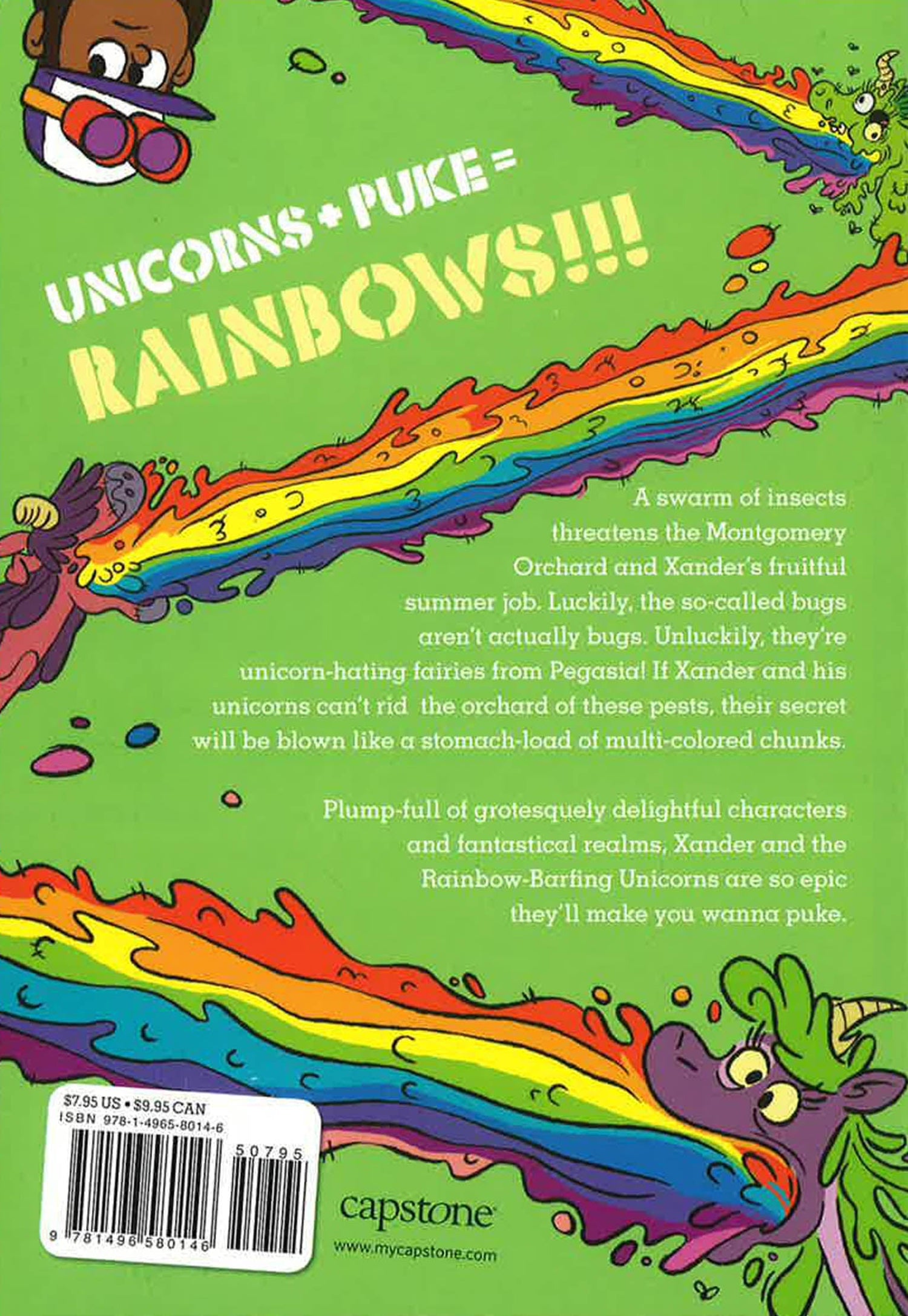Xander discovers a new magical creature - millions of them, actually! In this adventure, a swarm of insects threatens the Montgomery Orchard and twelve-year-old Xander's fruitful summer job. Luckily, the so-called bugs aren't actually bugs. Unluckily, they're miniature, unicorn-hating, insect fairies from the magical world of Pegasia! If Xander and his team of Rainbow-Barfing Unicorns can't rid the orchard of these no-good fairies, their secret will be blown quicker than a stomach-load of full-spectrum chunks. Plump-full of grotesquely delightful characters and fantastical realms, Xander and the Rainbow-Barfing Unicorns, from writer Matthew K. Manning (Batman/Teenage Mutant Ninja Turtles Adventures) is so epic it'll make you wanna puke.