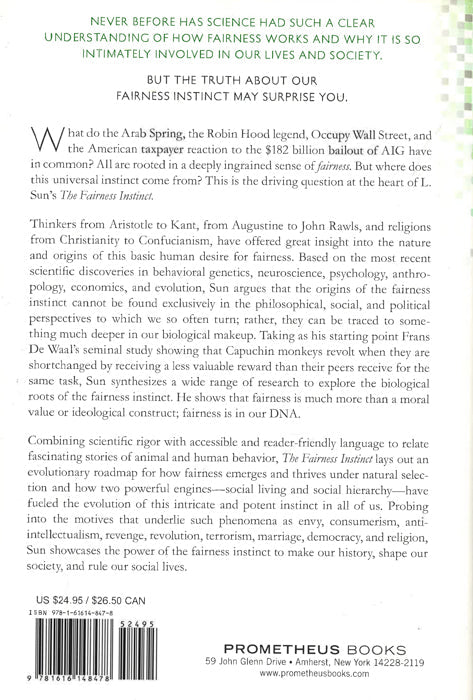 Biologist L. Sun examines the innate sense of fairness displayed by human beings in all kinds of societies throughout history. He argues persuasively that it is an emotion and behavior rooted in our DNA, rather than a product of ideology or convention. Citing animal studies that show that even monkeys react negatively to patently unfair treatment, Sun delves into the issue of why this instinct may have evolved with a new biological framework. Specifically, he identifies two selective forces behind the evolution of fairness. One is the need for resolving conflicts of interest in social groups, and the other is a bottom-up drive pushing toward equality in resource sharing in the hierarchies of society.