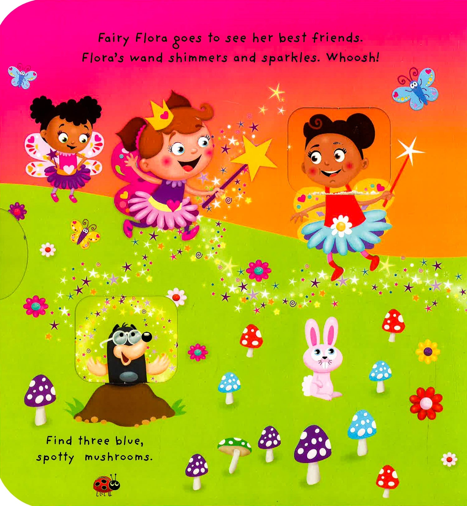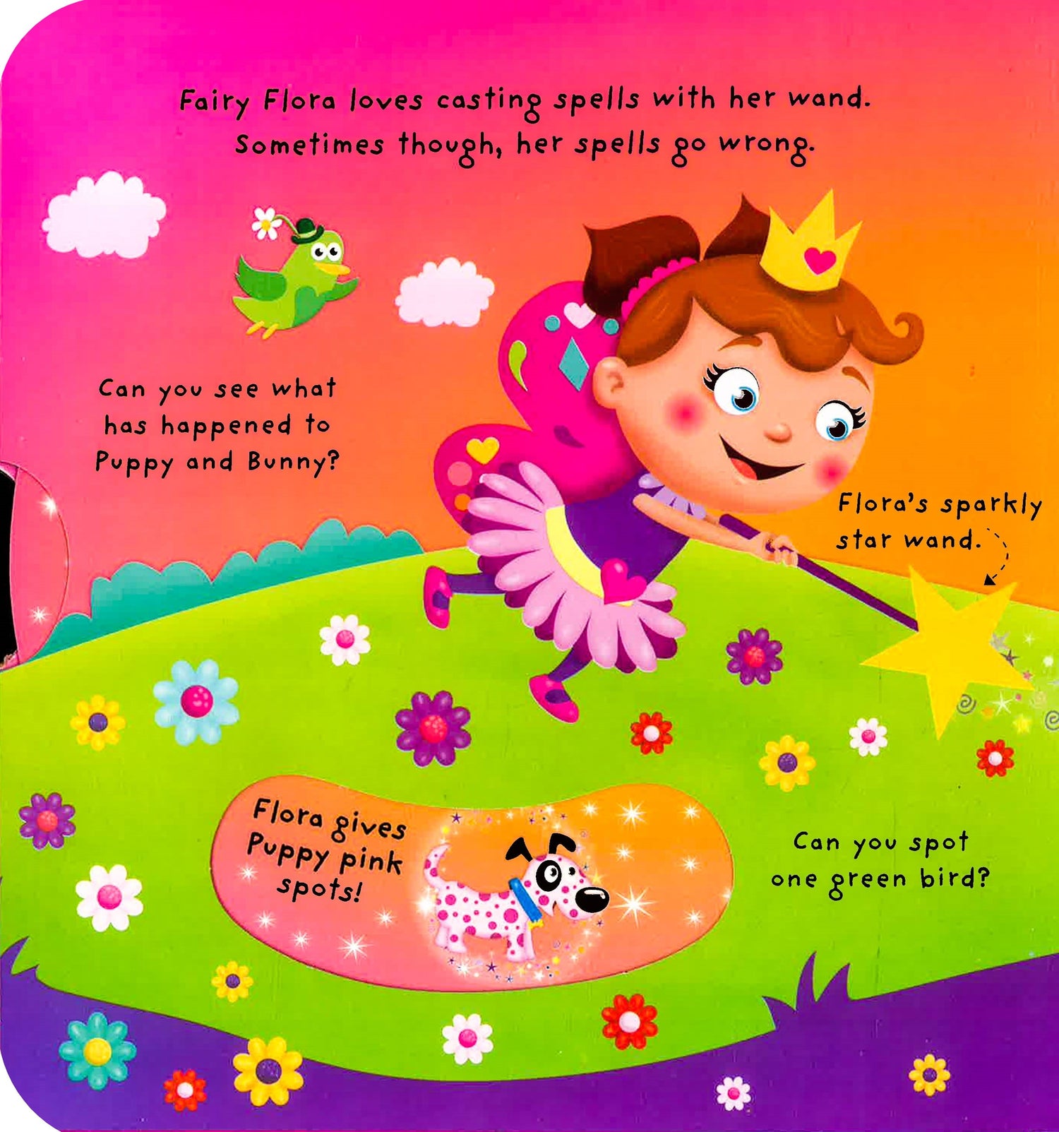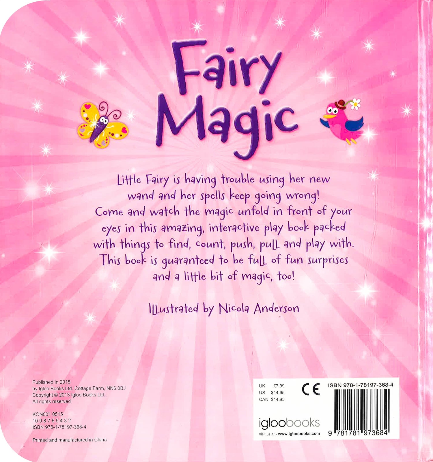 Little fairy is having trouble using her new wand and her spells keep going wrong!Come and watch the magic unfold in front of your eyes in this amazing, interactive play book packed with things to find, count, push, pull and play with. This book is guaranteed to be full of fun surprises and a little bit magic too!