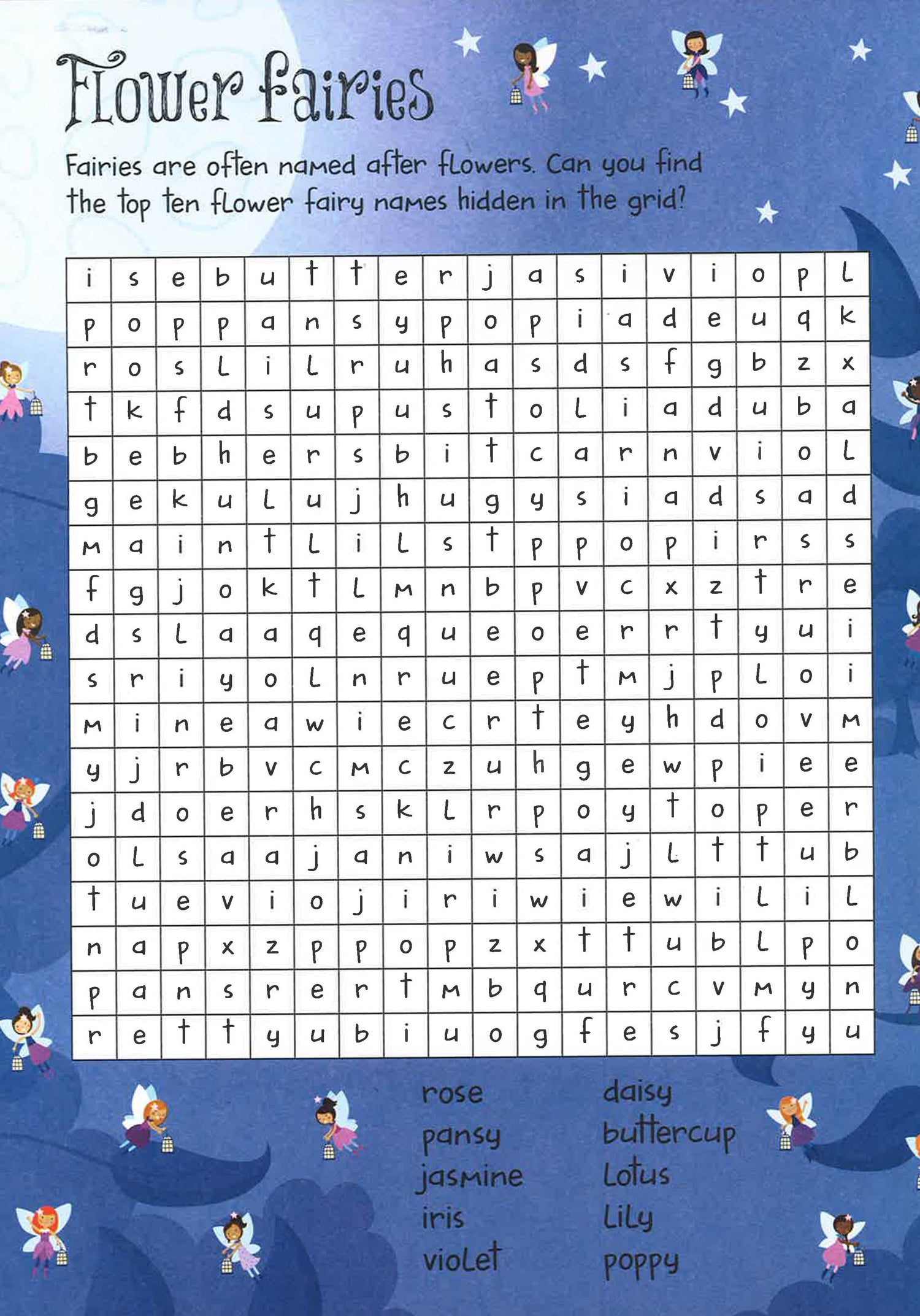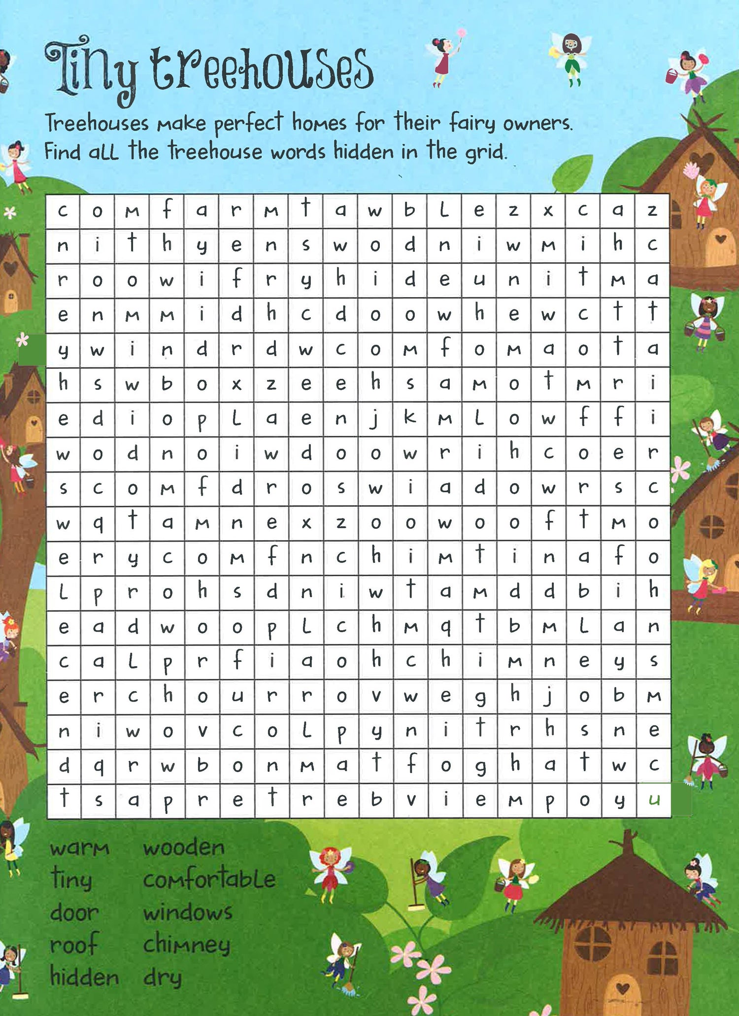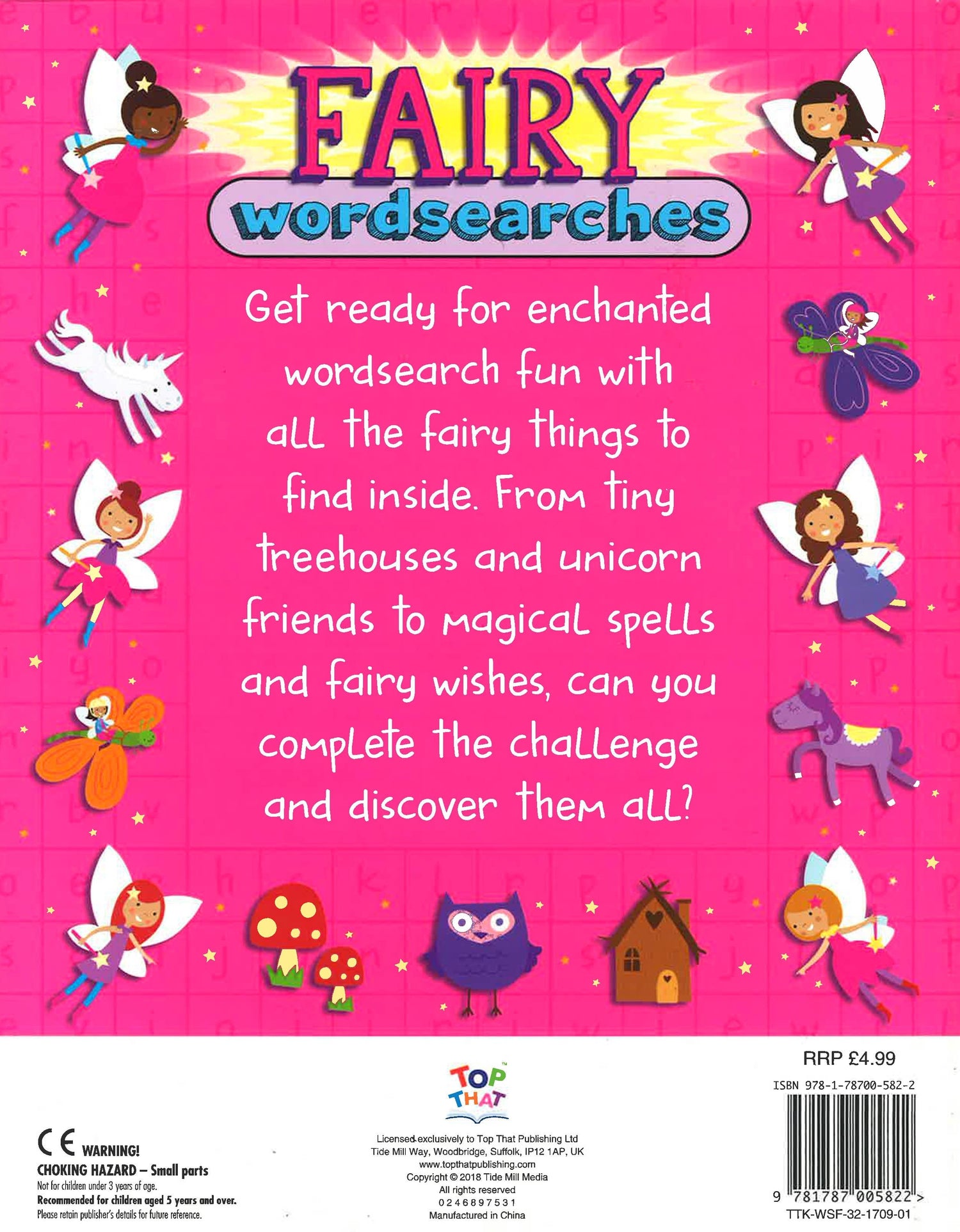 Get ready for enchanted word search fun with all the fairy things to find inside. From tiny Treehouses and unicorn friends to Magical spells and fairy wishes, can you COMPLete the challenge and discover them all?