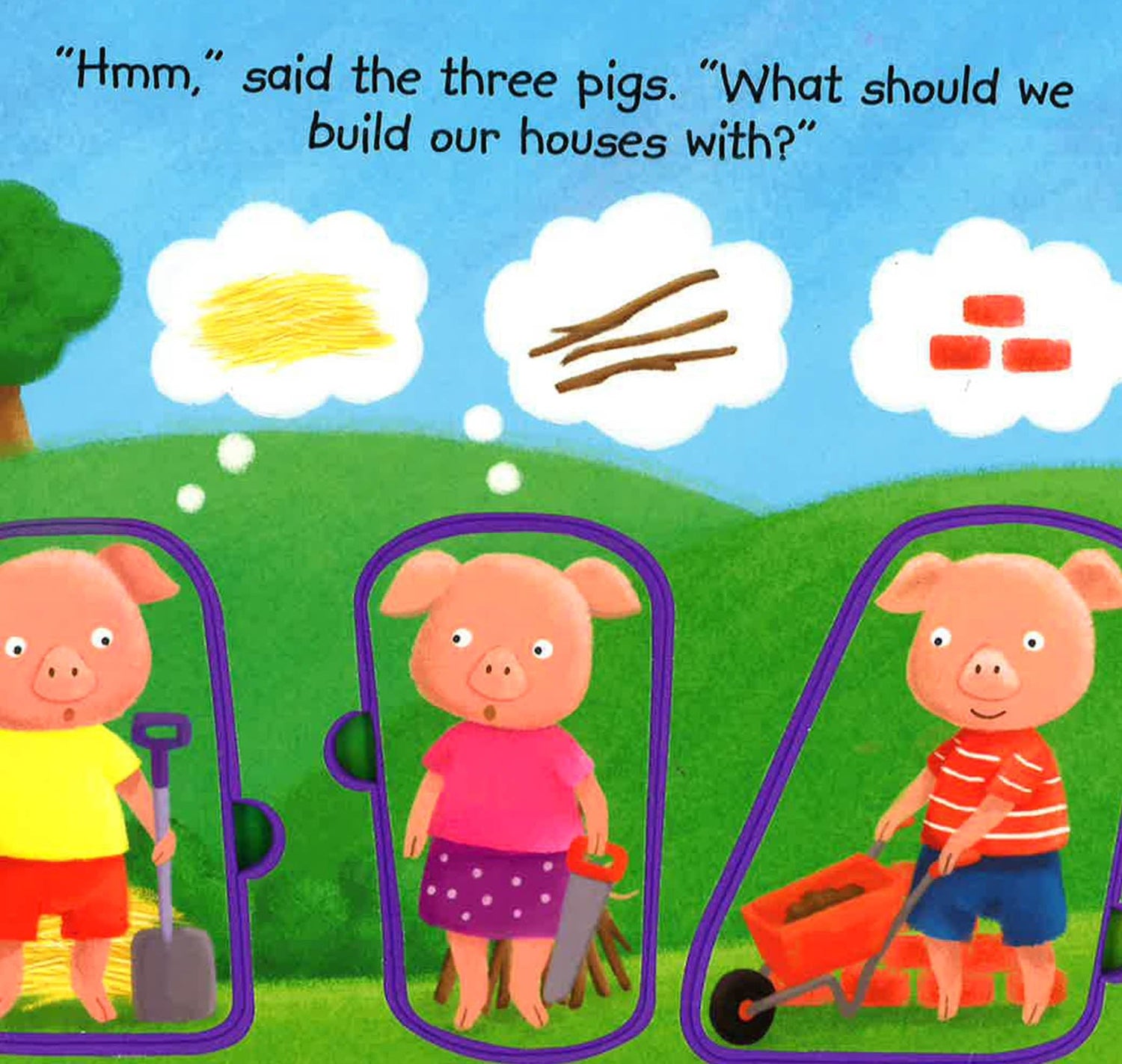 "Little pig, little pig, let me come in!" Straw, wood, or brick? Three little pigs learn a thing or two about household construction and unwelcome visitors in this fairy tale favorite. This foam book is filled with big, bright pictures, press-out play pieces, and fun, peek-through windows. Kids will love it because they can take out the foam pieces and play with them. Parents will love it because the art underneath isn't affected after you pull out the foam pieces. Everyone will love it for the funny, original take on this classic favorite! Kids are sure to reach for them whenever they want to giggle, play, and take a trip to fairy tale land.