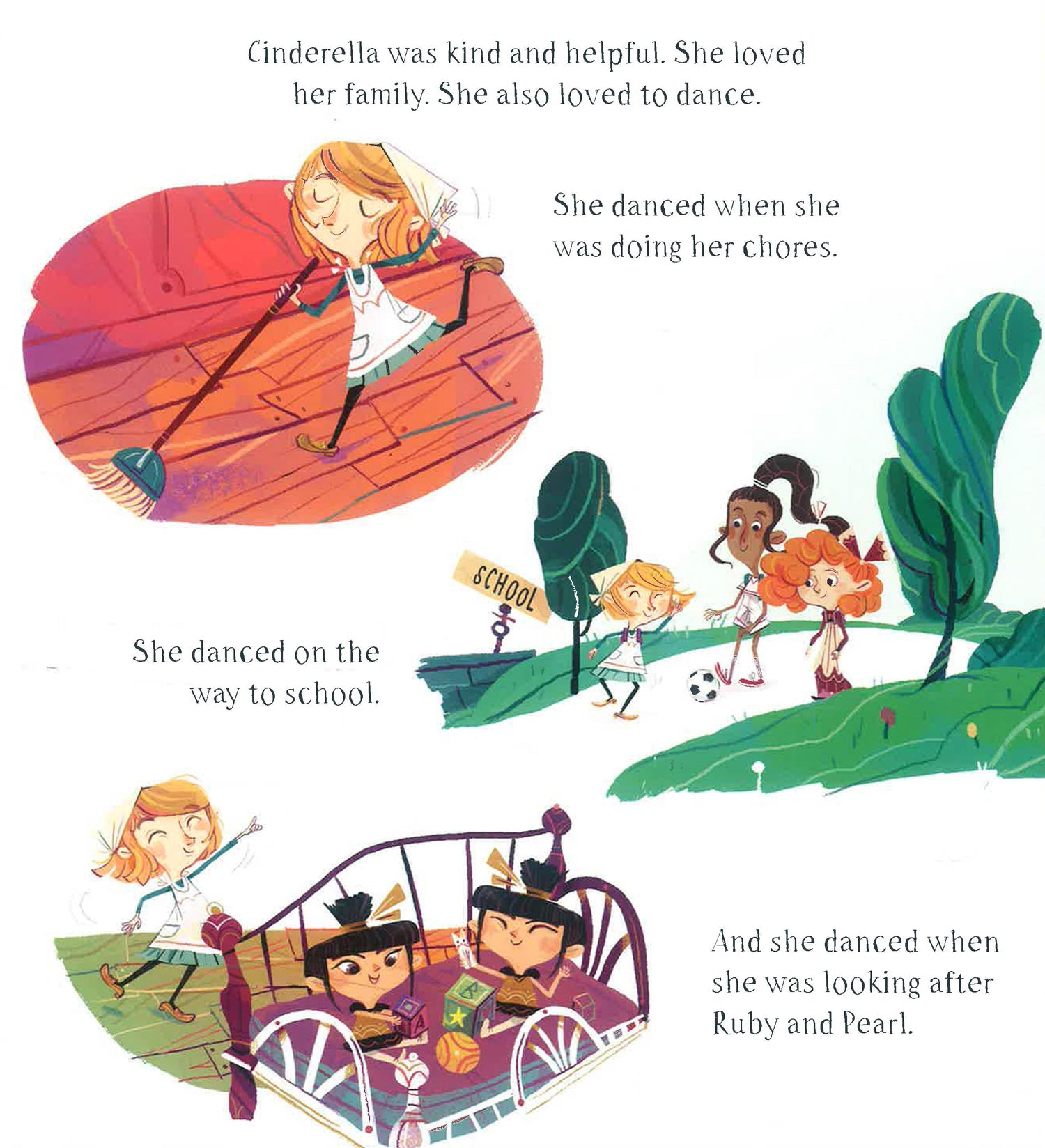 Cinderella wants more than anything to take lessons at the new dance school in the village, but she doesn't have any ballet shoes. Will her dreams ever come true? Learn about kindness in this original story about Cinderella and her fairytale friends.