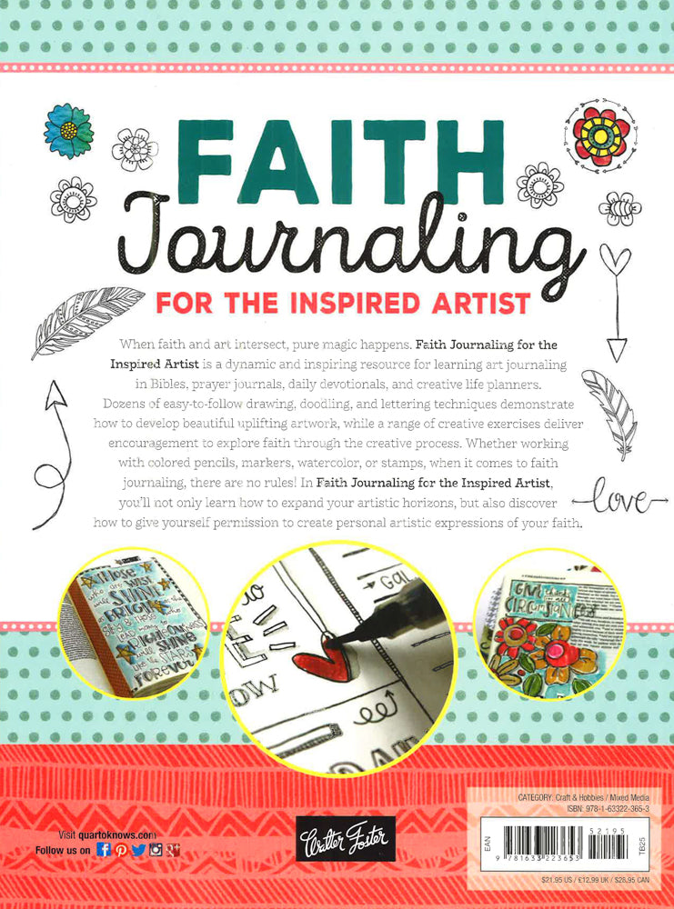 When faith and art intersect, pure magic happens. Faith Journaling for the Inspired Artist is a dynamic and inspiring resource for learning art journaling in Bibles, prayer journals, daily devotionals, and creative life planners. This beautifully designed guide features dozens of easy-to-follow drawing, doodling, and lettering techniques that demonstrate how to develop beautiful, uplifting artwork.