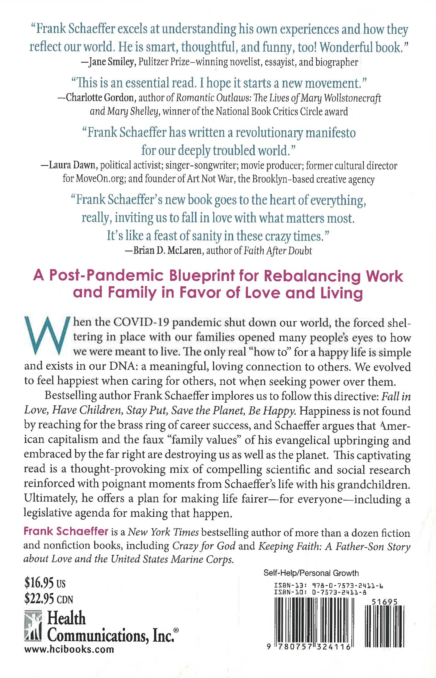 Bestselling author Frank Schaeffer offers a passionate political, social, and lifestyle “blueprint” for changes millions of us know are needed to rebalance our work lives with thriving relationships: Fall in Love, Have Children, Stay Put, Save the Planet, Be Happy. Even before everything was disrupted by COVID-19 (not to mention by Trump), millions of Americans were already questioning capitalism’s “values.” We were already challenging the idea that your job defines you. We already knew something was wrong. Loneliness, frustration, and alienation were already on the rise. Even the most successful of us felt too busy, too preoccupied, and too distracted to enjoy what we intuitively know are life’s greatest rewards: vibrant relationships, family life, connection to others, involvement in our community, and the thrilling experience of love.