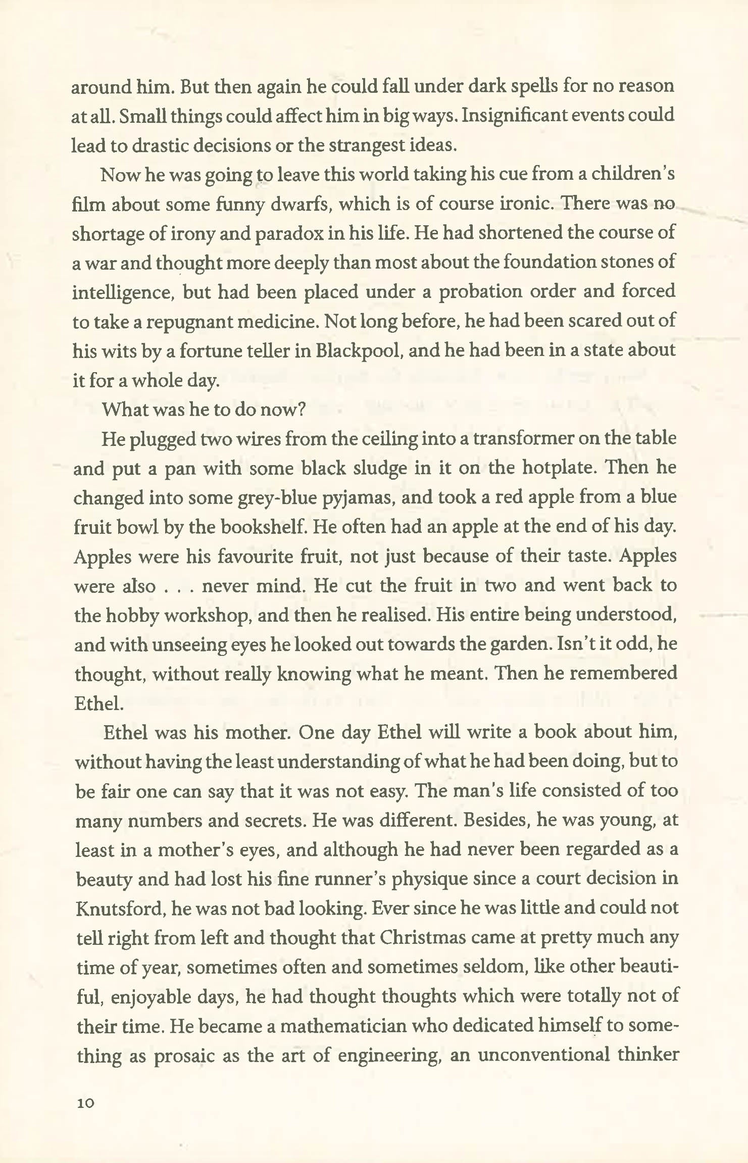 A powerful tale of honour, prejudice and the twentieth century's most maltreated hero, by the acclaimed author of THE GIRL IN THE SPIDER'S WEB.June 8, 1954. Alan Turing, the visionary mathematician, is found dead at his home in sleepy Wilmslow, dispatched by a poisoned apple. Taking the case, Detective Constable Leonard Corell quickly learns Turing is a convicted homosexual. Confident it's a suicide, he is nonetheless confounded by official secrecy over Turing's war record. What is more, Turing's sexuality appears to be causing alarm among the intelligence services - could he have been blackmailed by Soviet spies? Stumbling across evidence of Turing's genius, and sensing an escape from a narrow life, Corell soon becomes captivated by Turing's brilliant and revolutionary work, and begins to dig deeper. But in the febrile atmosphere of the Cold War, loose cannons cannot be tolerated. As his innocent curiosity takes him far out of his depth, Corell realises he has much to learn about the dangers of forbidden knowledge.