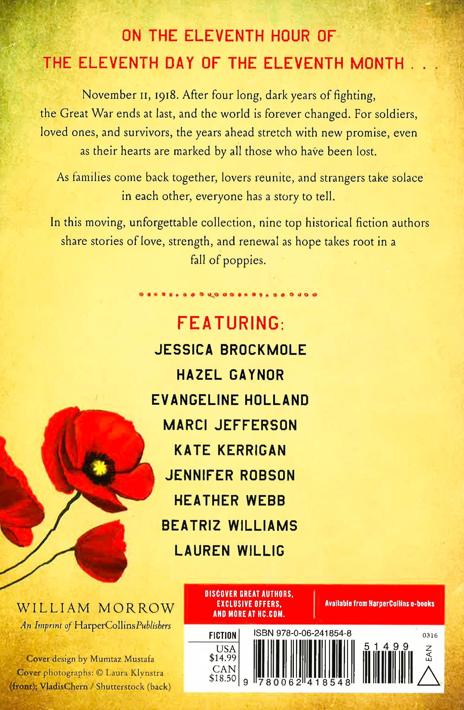 Top voices in historical fiction deliver an unforgettable collection of short stories set in the aftermath of World War I-featuring bestselling authors such as Hazel Gaynor, Jennifer Robson, Beatriz Williams, and Lauren Willig and edited by Heather Webb. On the eleventh hour of the eleventh day of the eleventh month...November 11, 1918. After four long, dark years of fighting, the Great War ends at last, and the world is forever changed. For soldiers, loved ones, and survivors the years ahead stretch with new promise, even as their hearts are marked by all those who have been lost. As families come back together, lovers reunite, and strangers take solace in each other, everyone has a story to tell. In this moving anthology, nine authors share stories of love, strength, and renewal as hope takes root in a fall of poppies. Featuring: Jessica Brockmole Hazel Gaynor Evangeline Holland Marci Jefferson Kate Kerrigan Jennifer Robson Beatriz Williams Lauren Willig Heather Webb