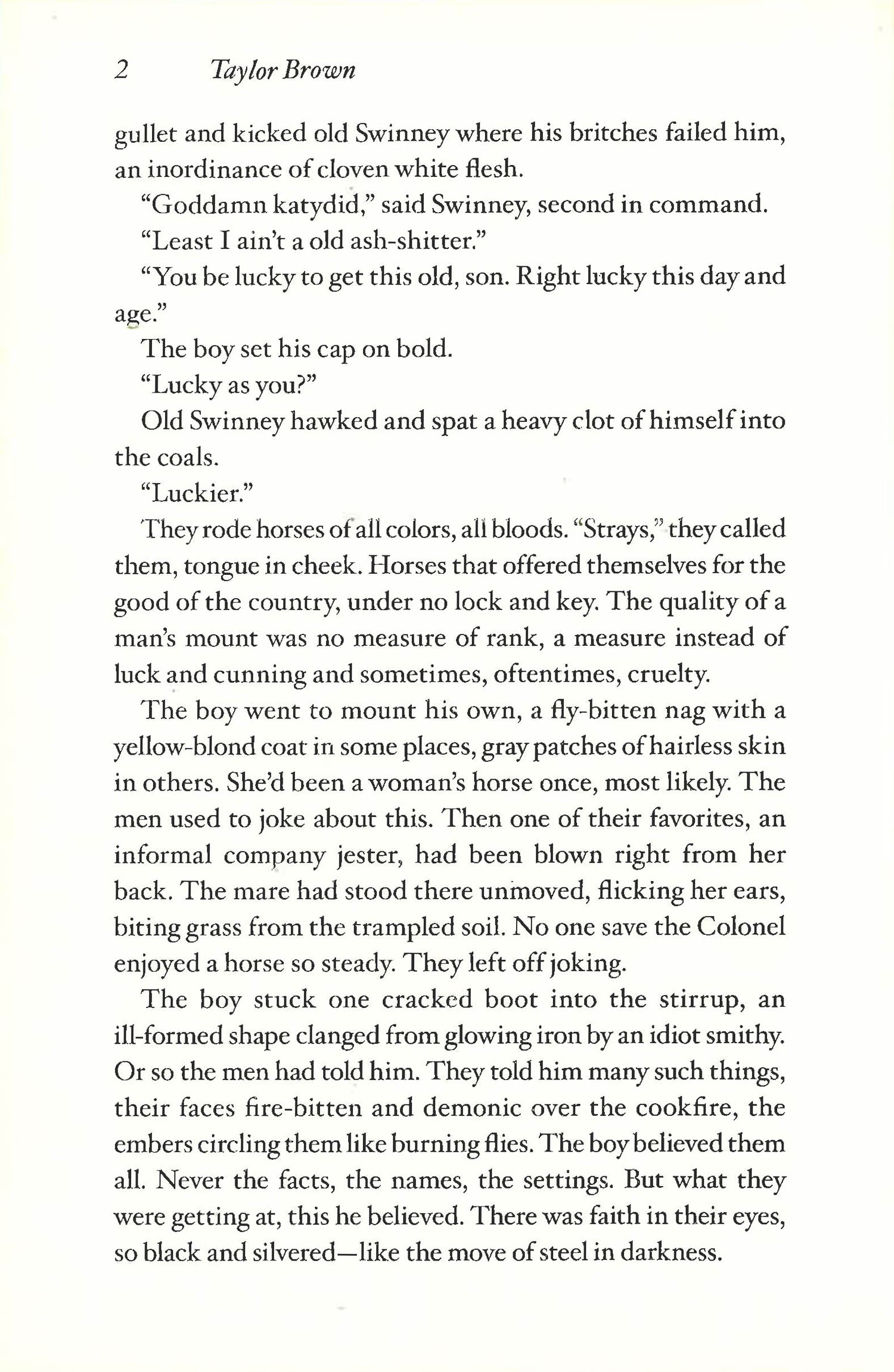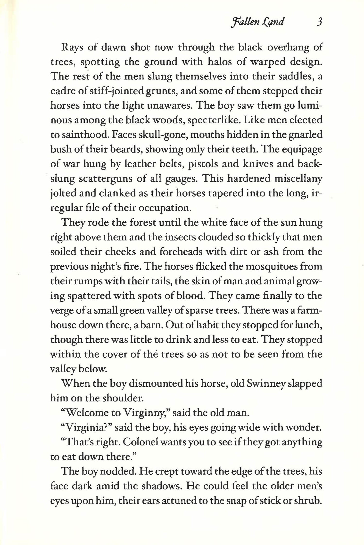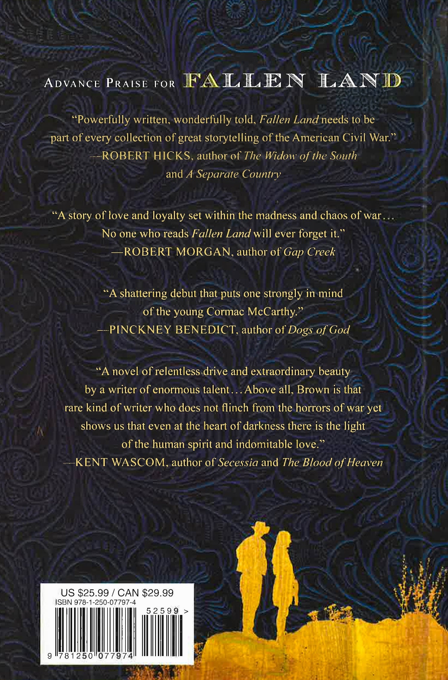 Fallen Land is Taylor Brown's debut novel set in the final year of the Civil War, as a young couple on horseback flees a dangerous band of marauders who seek a bounty reward. Callum, a seasoned horse thief at fifteen years old, came to America from his native Ireland as an orphan. Ava, her father and brother lost to the war, hides in her crumbling home until Callum determines to rescue her from the bands of hungry soldiers pillaging the land, leaving destruction in their wake. Ava and Callum have only each other in the world and their remarkable horse, Reiver, who carries them through the destruction that is the South. Pursued relentlessly by a murderous slave hunter, tracking dogs, and ruthless ex-partisan rangers, the couple race through a beautiful but ruined land, surviving on food they glean from abandoned farms and the occasional kindness of strangers. In the end, as they intersect with the scorching destruction of Sherman's March, the couple seek a safe haven where they can make a home and begin to rebuild their lives. Dramatic and thrillingly written with an uncanny eye for glimpses of beauty in a ravaged landscape, Fallen Land is a love story at its core, and an unusually assured first novel by award-winning young author Taylor Brown.
