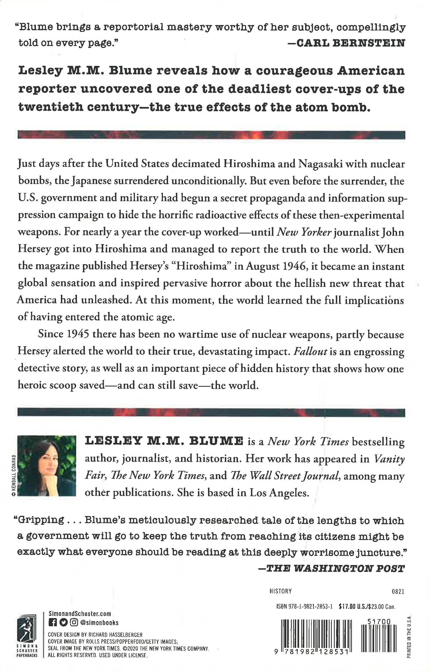 Released on the anniversary of the Hiroshima bombing, Fallout is an engrossing detective story, as well as an important piece of hidden history that shows how one heroic scoop saved—and can still save—the world.