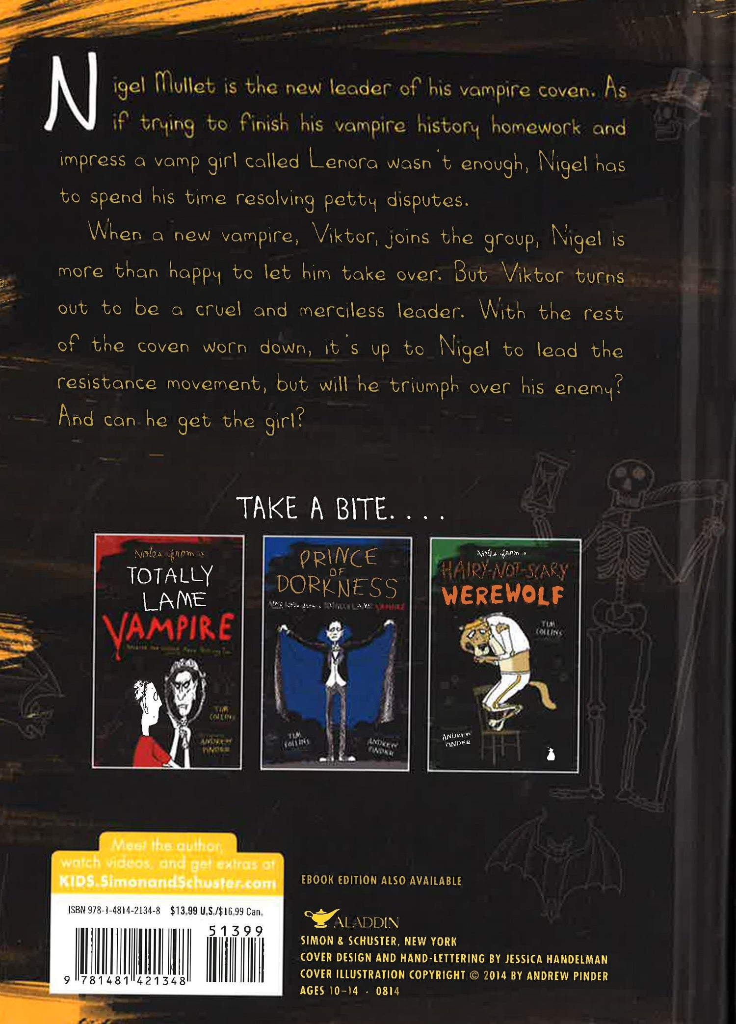 Nigel Mullet (vampire, diarist, not-so-heroic hero) puts his leadership - and romantic - skills to the test in this fun, funny, and not-at-all-lame conclusion to the Totally Lame Vampire series. Nigel Mullet finds himself in charge of a vampire coven on a remote Scottish island. As if trying to finish his vampire history homework and impress a vamp girl called Lenora wasn't enough, Nigel has to spend his time resolving petty disputes. When a new vampire named Viktor joins the coven, Nigel is happy to let him take over. But this newcomer soon proves himself to be a brutal and merciless leader. The hapless Nigel is cajoled into becoming the head of the resistance movement, but will he triumph over his enemy? And perhaps more importantly...will he get the girl?