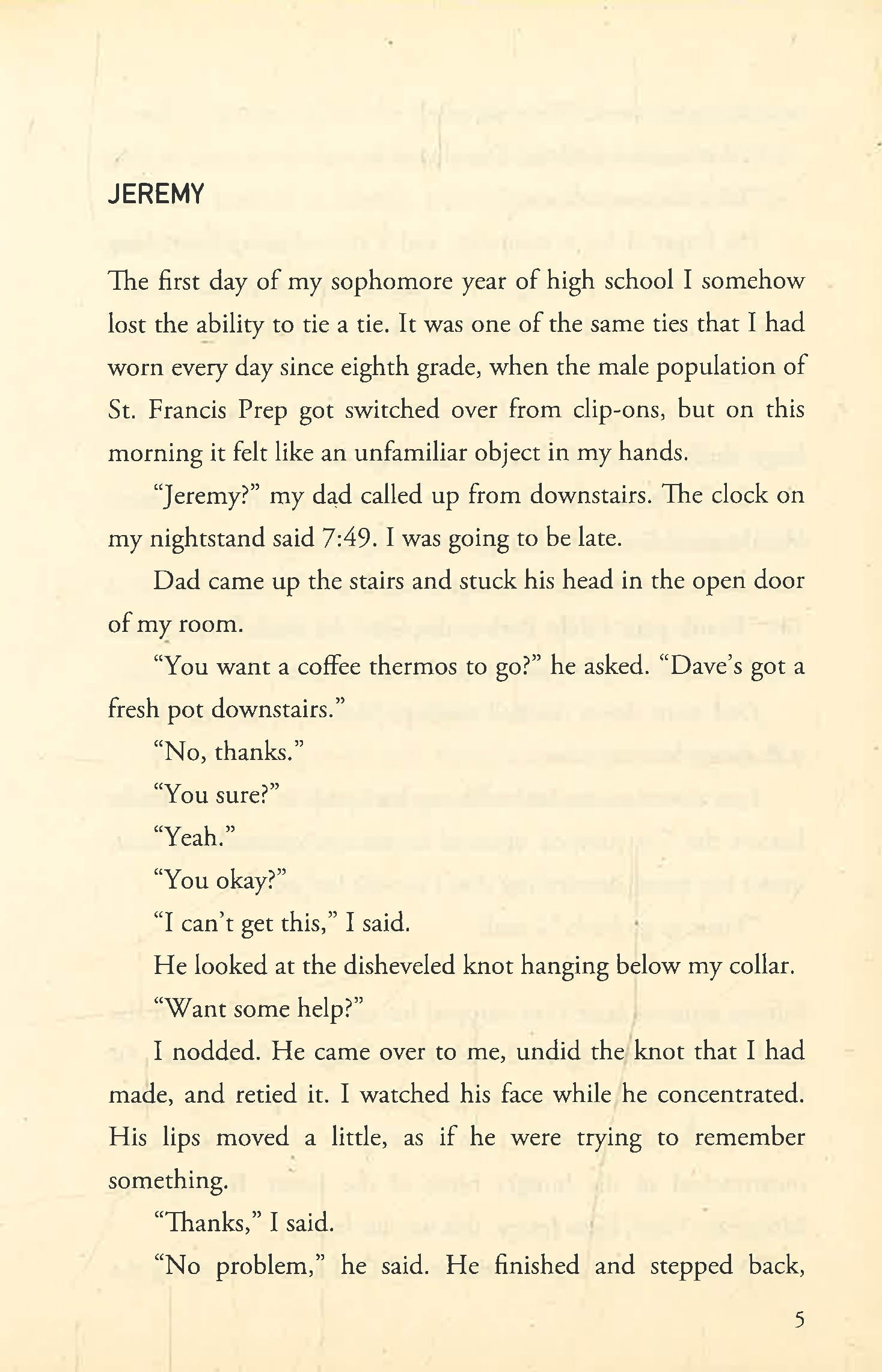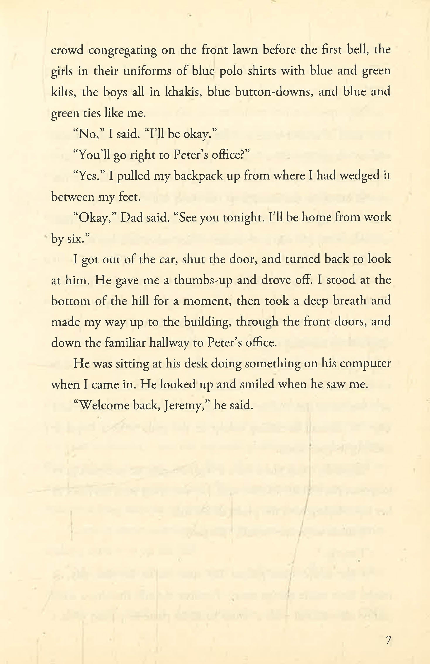 JEREMY is the painfully shy art nerd at St. Francis who's been in self-imposed isolation after an incident that ruined his last year of school. When he sees Sebby for the first time across the school lawn, it's as if he's been expecting him.