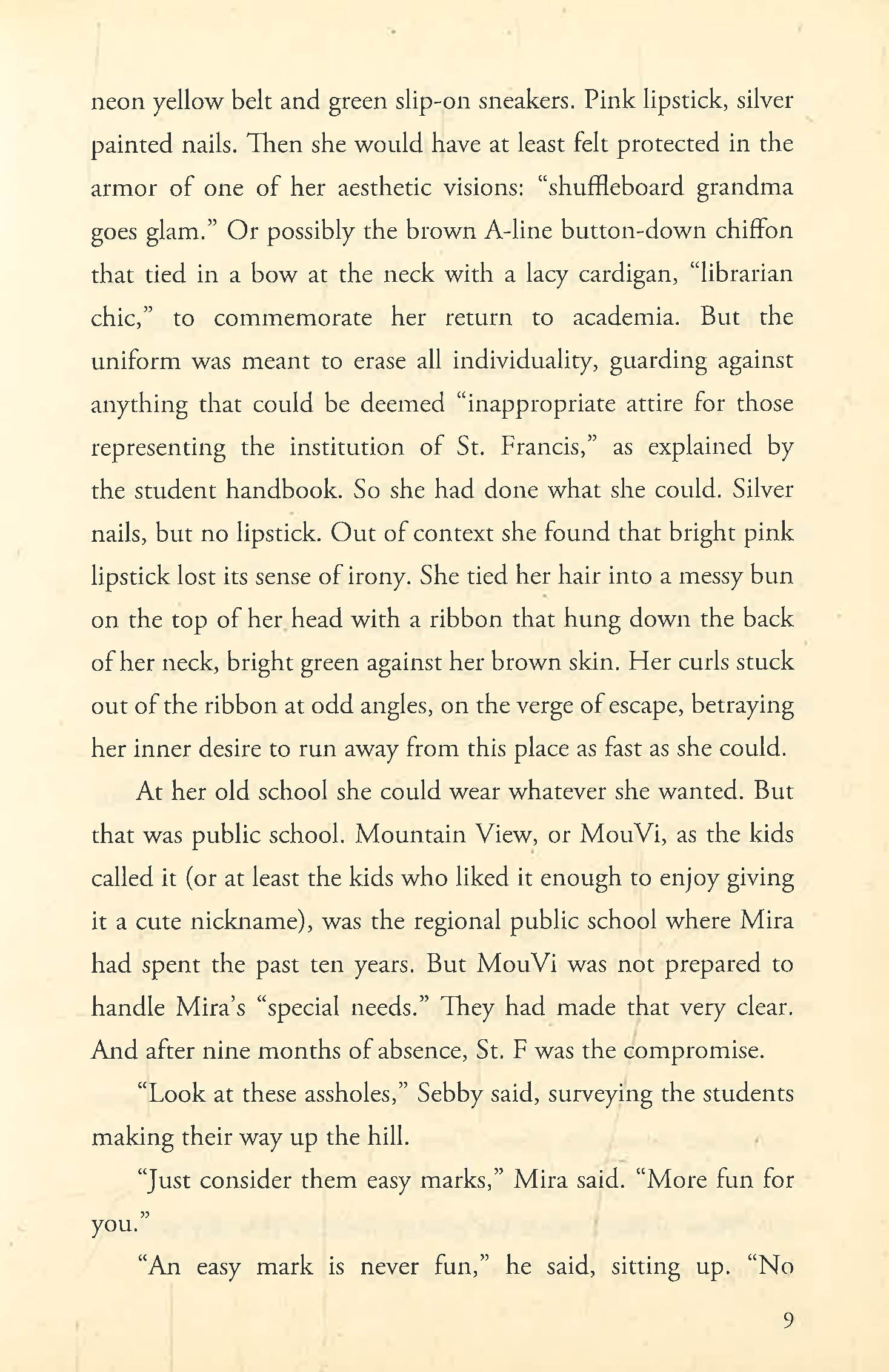 MIRA is starting over at St. Francis Prep. She promised her parents she would at least try to pretend that she could act like a functioning human this time, not a girl who can't get out of bed for days on end, who only feels awake when she's with Sebby.