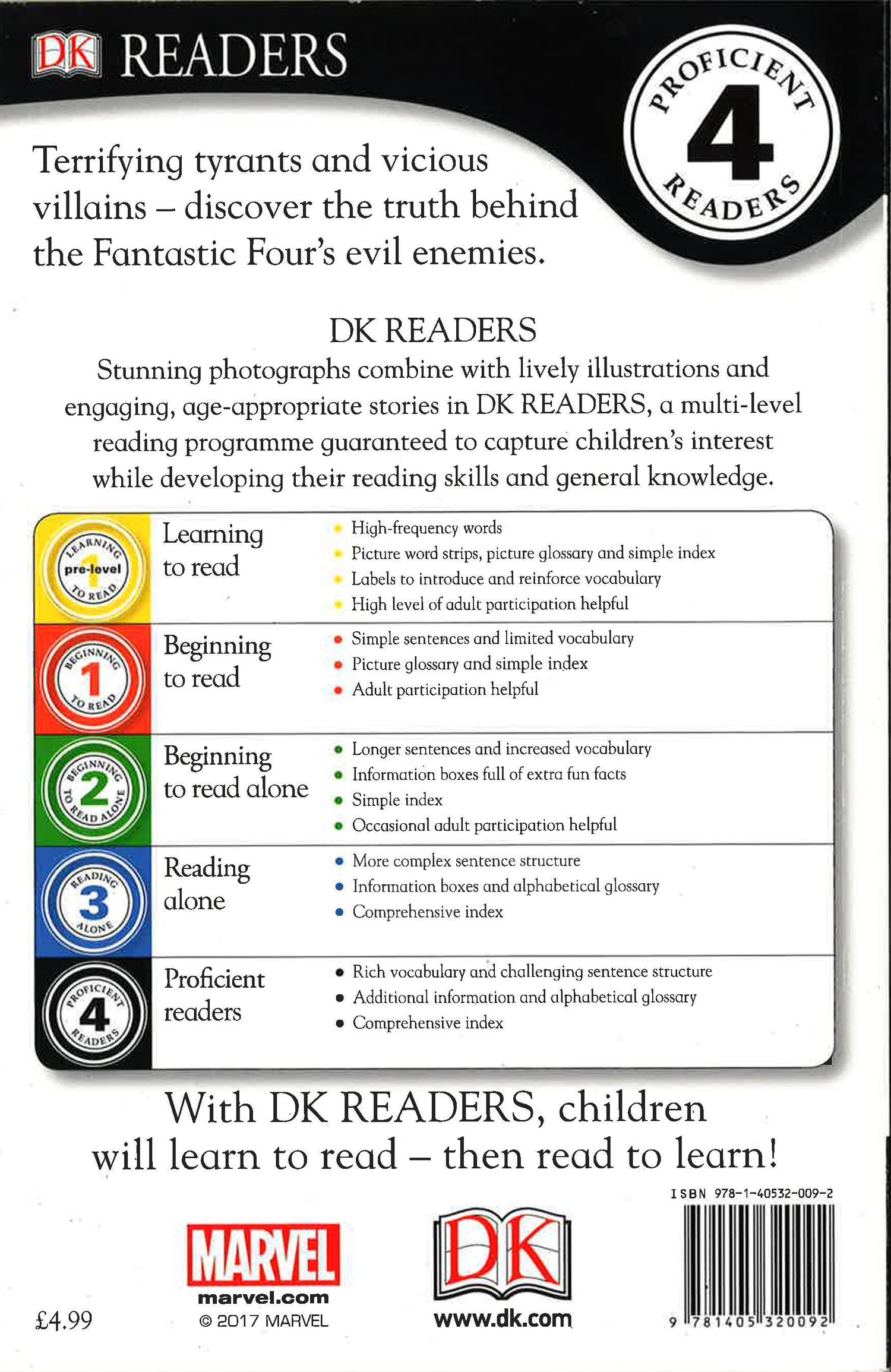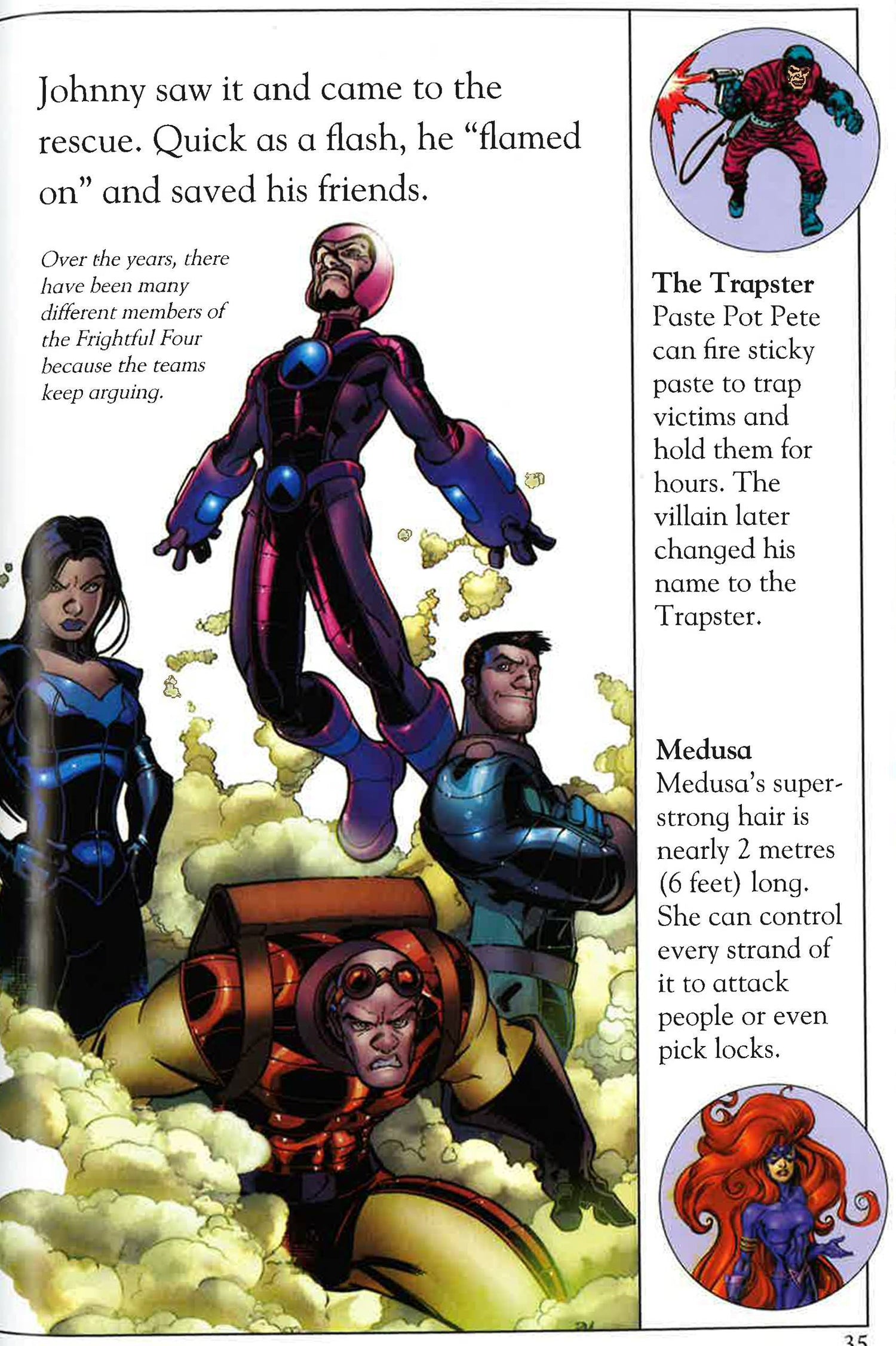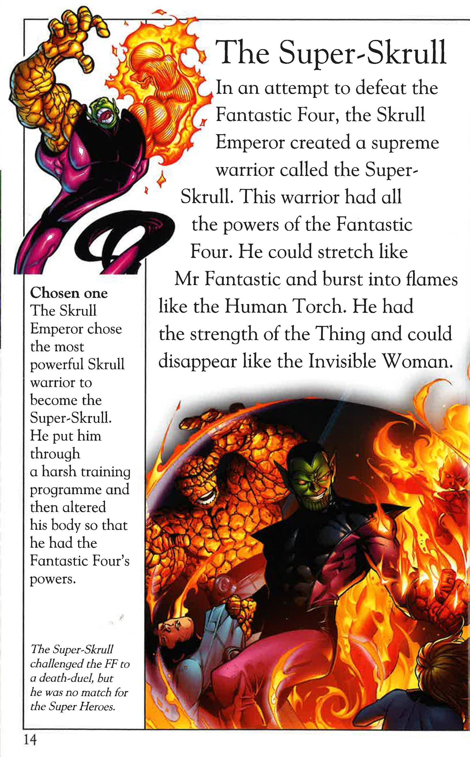 Fantastic fun with the Fantastic Four! Feeling brave? Fancy coming face-to-face with Ben, Sue, Reed and Johnny's arch enemies? Get up close and personal with the most evil beings in this universe - from the underground-dwelling Mole Man and the iron-masked Doctor Doom, to the green-skinned Skrulls and the supervillain Puppet Master, who creates people from radioactive clay. Discover how the super team use their amazing powers to defeat them all. Packed with pictures of your favourite heroes and villains, it's an out-of-this-world read.