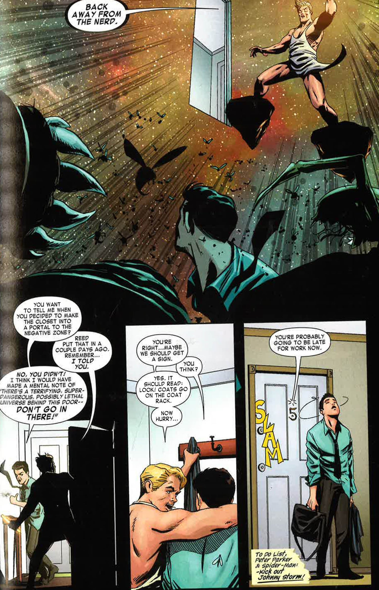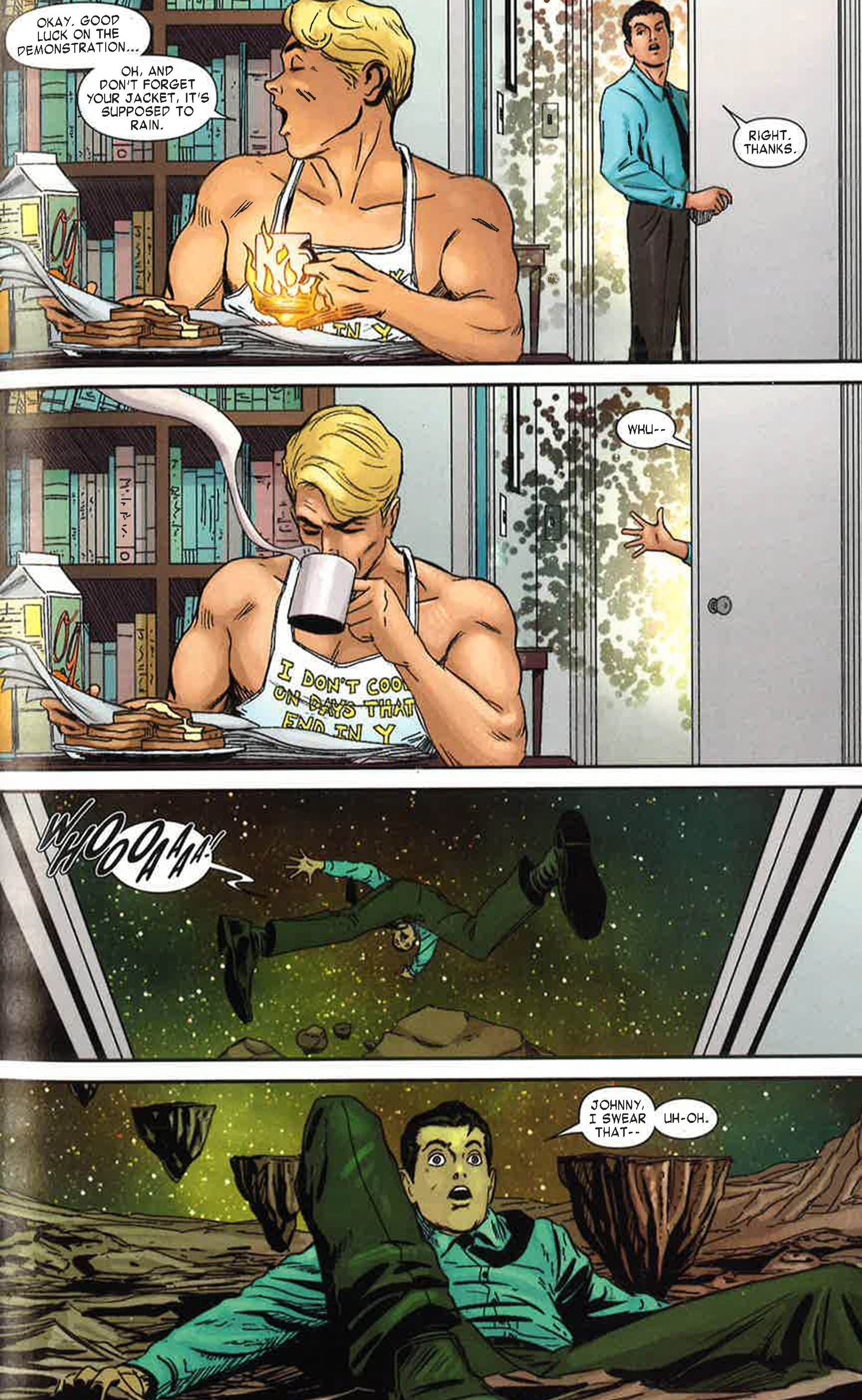 The Future Foundation explores the furthest reaches of the Marvel Universe from Wakanda to the Negative Zone, encountering the Wizard and the Universal Inhumans along the way! Plus: What horror lurks inside Spider-Man and Human Torch's bathroom?