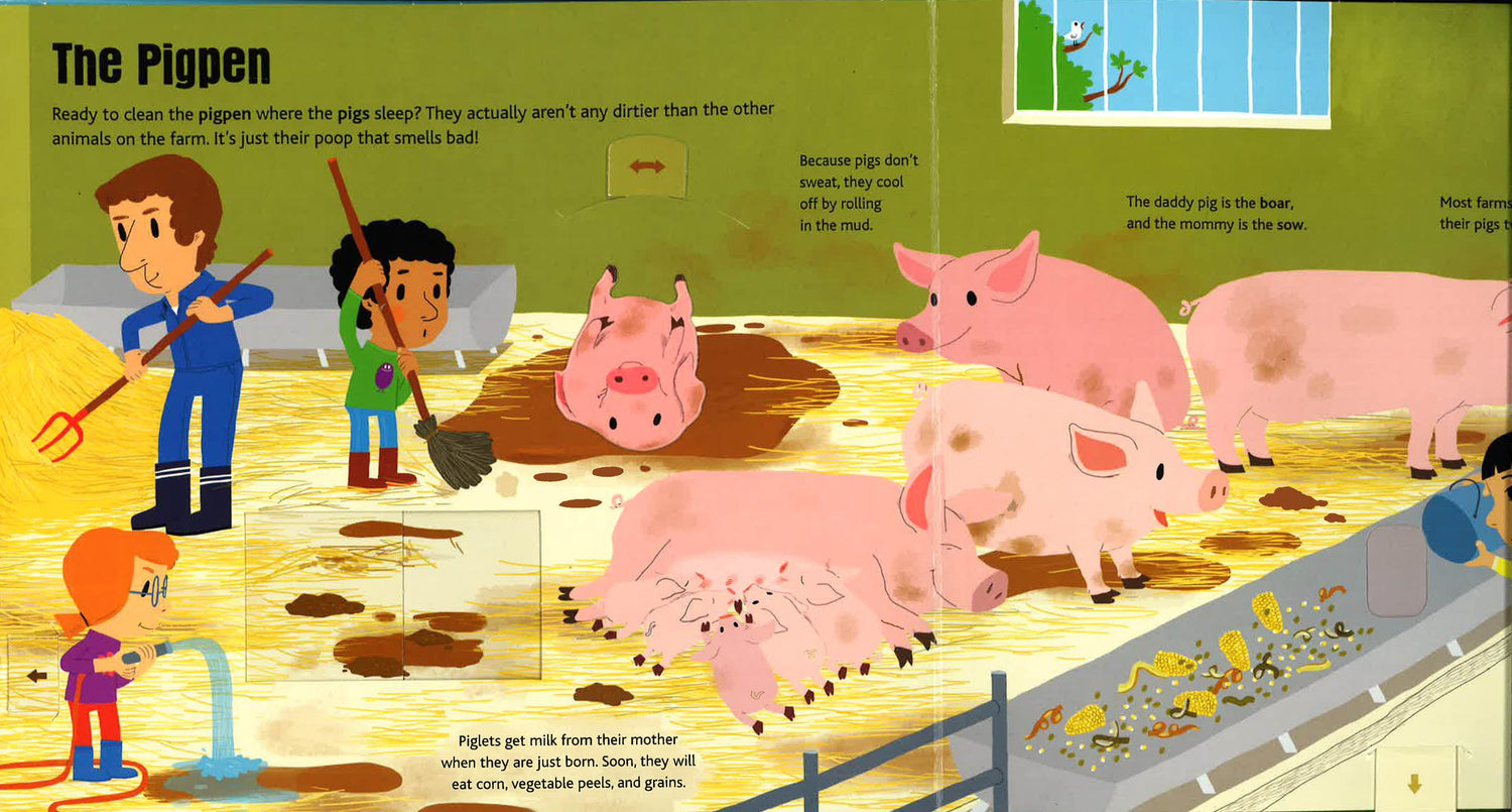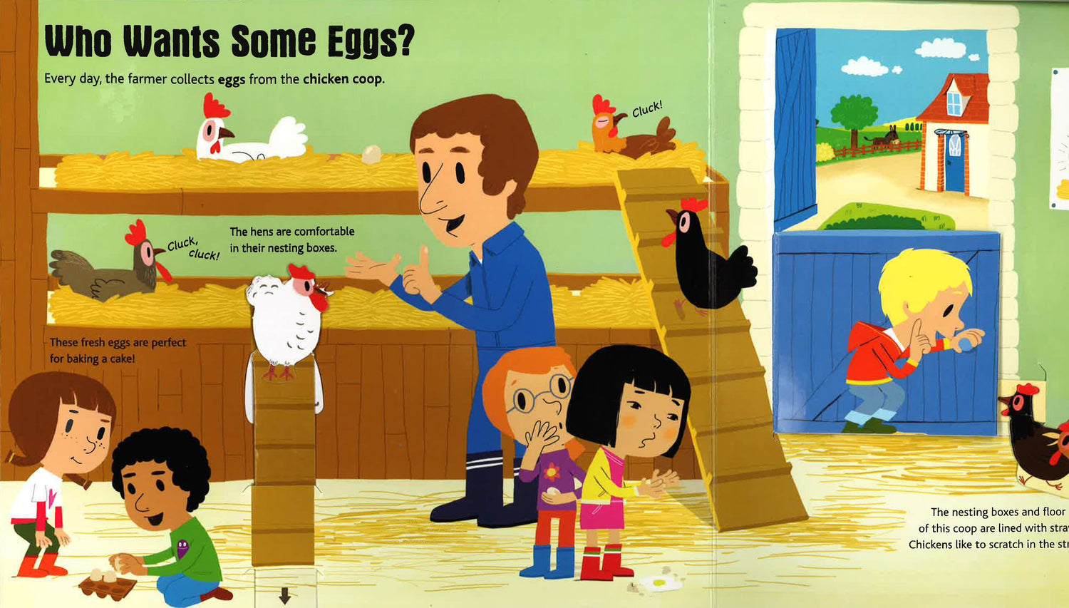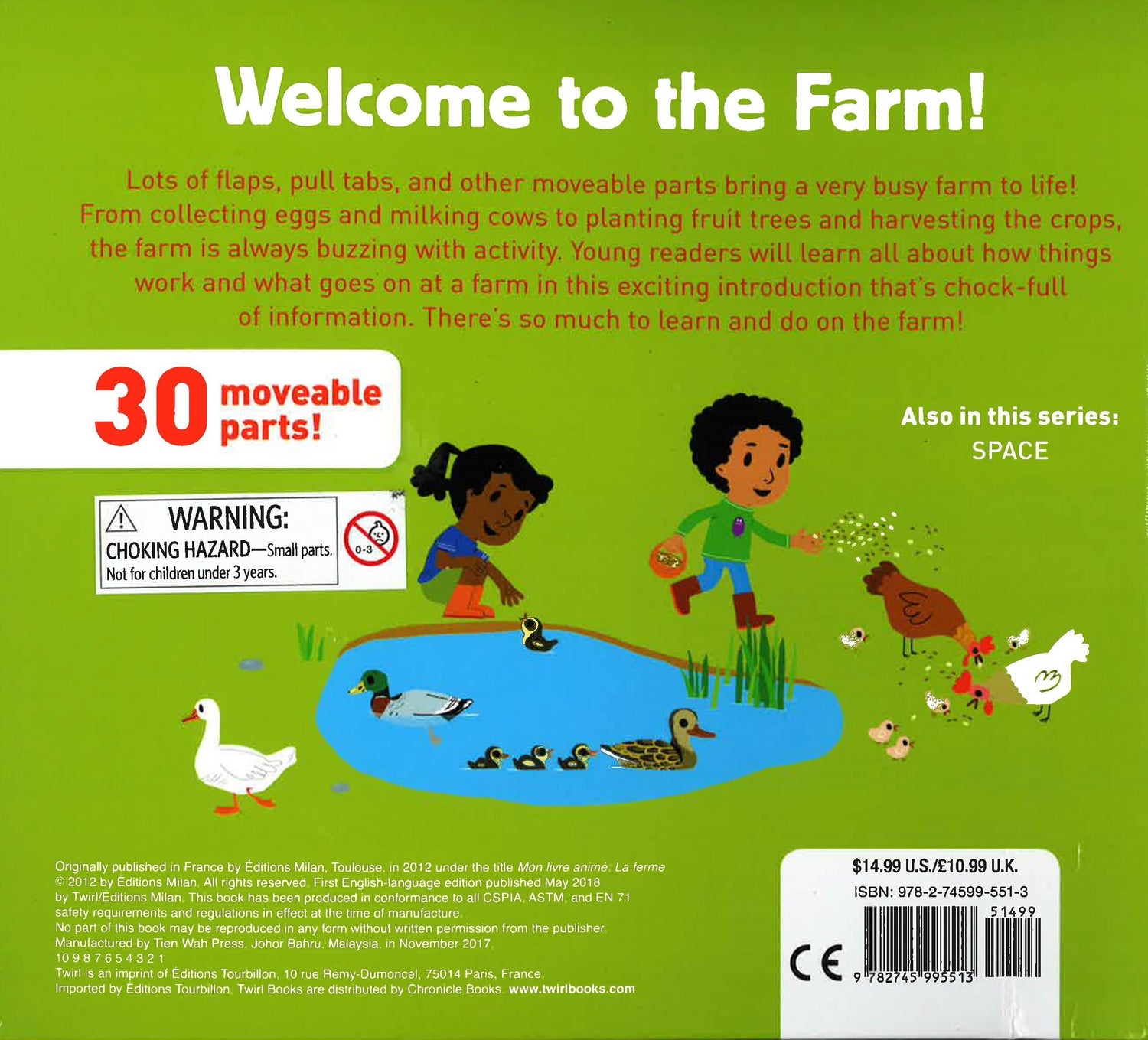 Flaps, pull tabs, and many other movable parts bring a very busy farm to life! From gathering eggs and milking cows to planting fruit trees and harvesting the crops, the farm is always buzzing with activity. Young readers will learn all about how things work and what goes on at a farm in this exciting introduction that's chock-full of information. There's so much to learn and do on the farm!