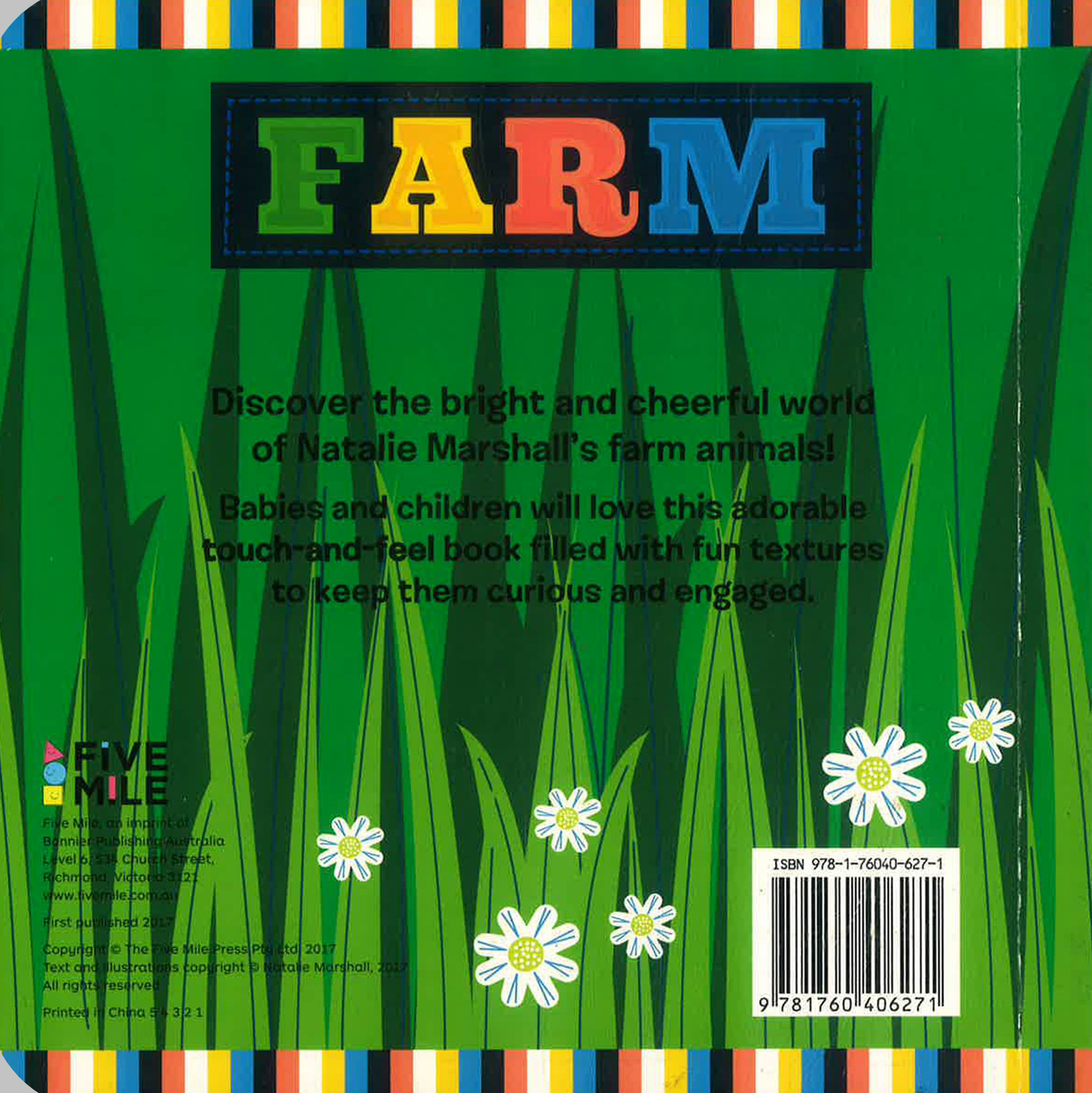 Discover the bright and cheerful world of Natalie Marshall’s farm animals! Babies and children will love this adorable touch-and-feel book filled with fun textures to keep them curious and engaged.