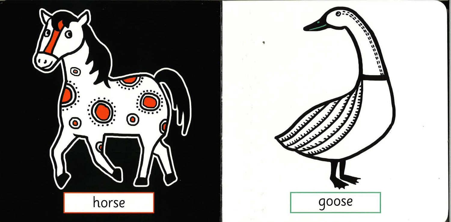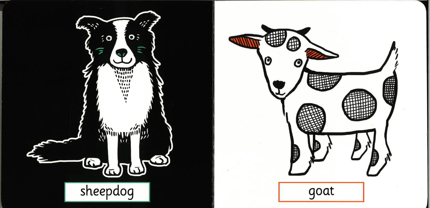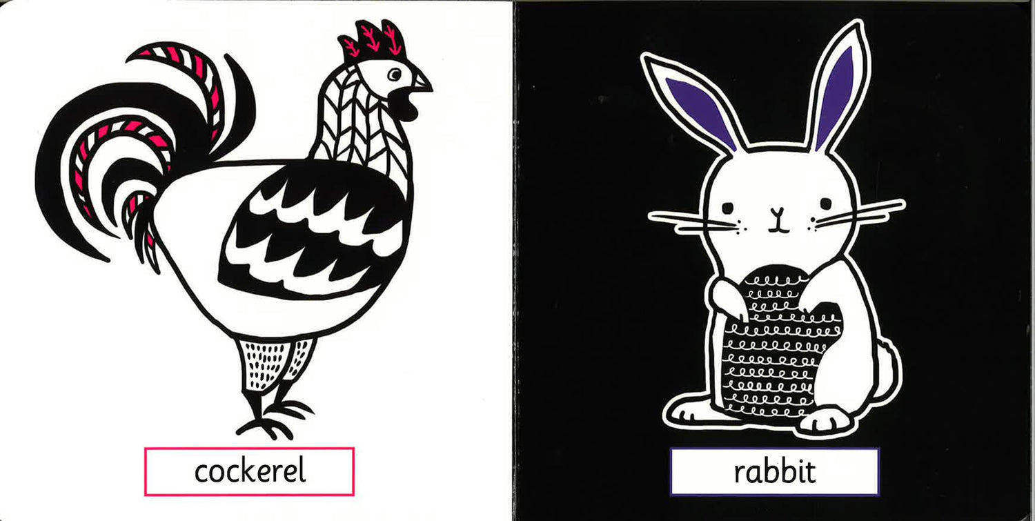 These bold and decorative pictures are the perfect introduction to farm animals. The high-contrast black-and-white images can stimulate babies' visual development.