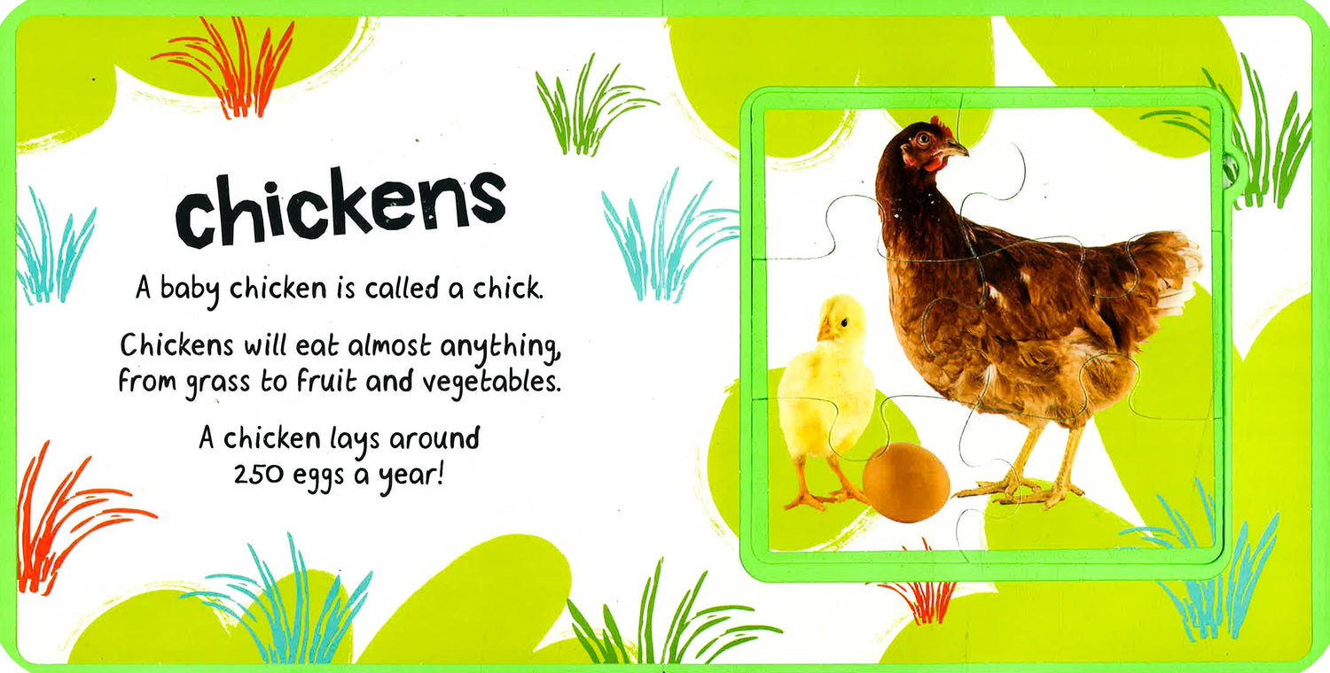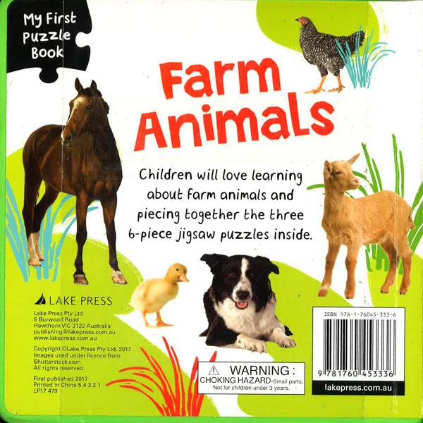Children will love learning about farm animals and piecing together the three 6-piece jigsaw puzzles inside.