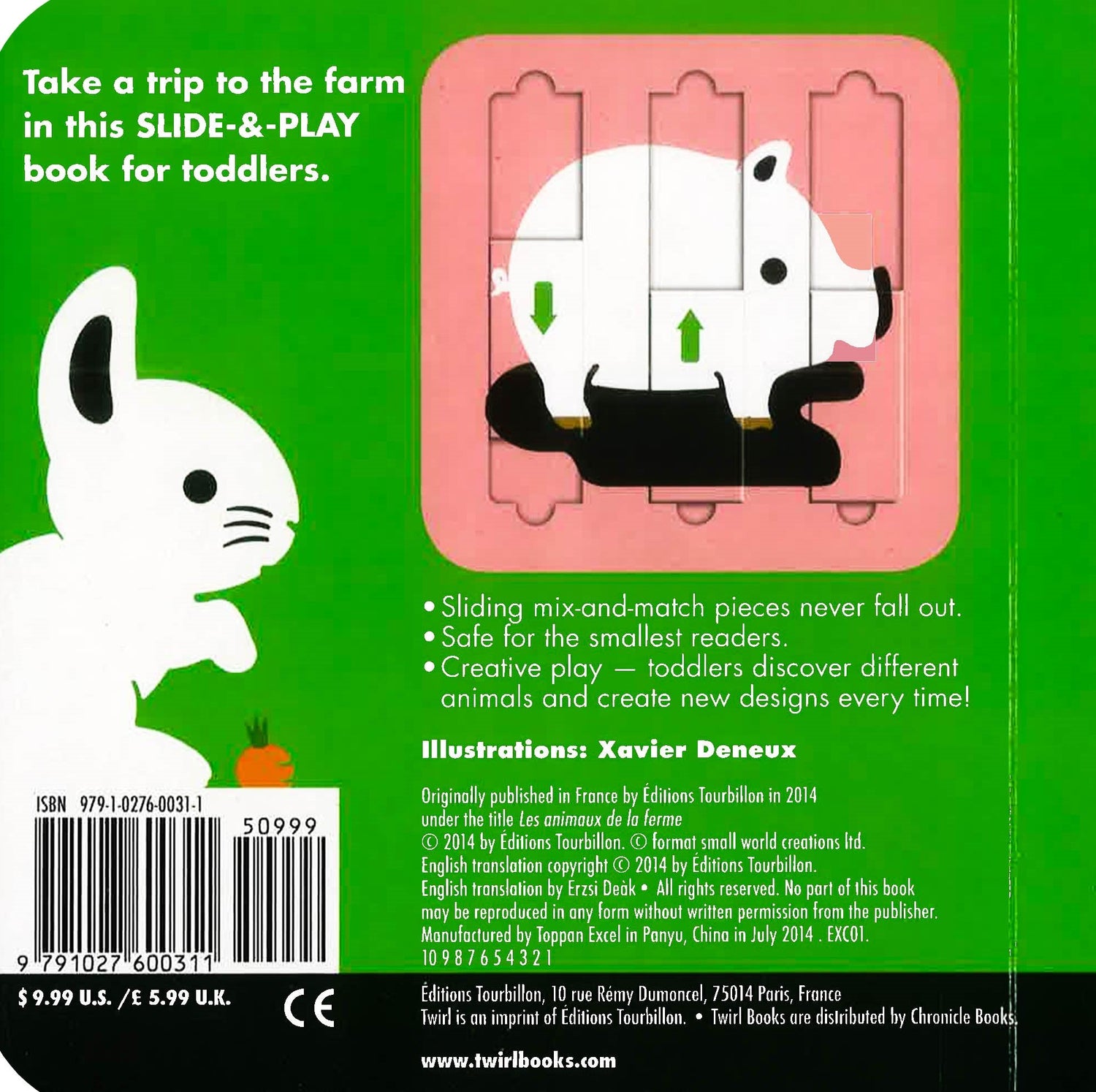 Eight slide-&-play pages feature puzzle pieces that never fall out and are safe for children of all ages. Toddlers will delight in discovering different animals and creating endless new designs. Take a trip to the farm with this slide-&-play book for toddlers!