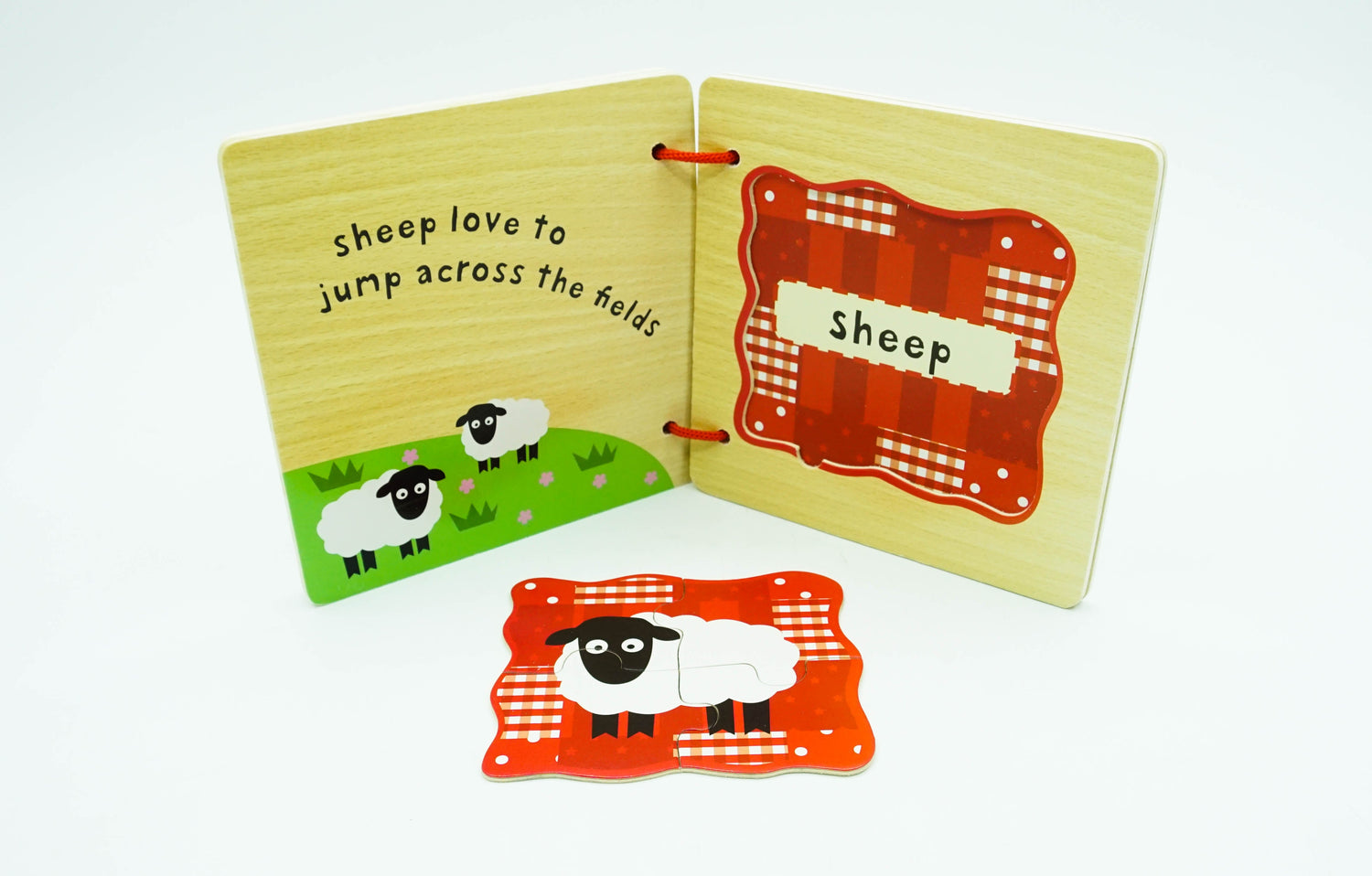 Children will love learning first words with this interactive chunky wooden jigsaw book.