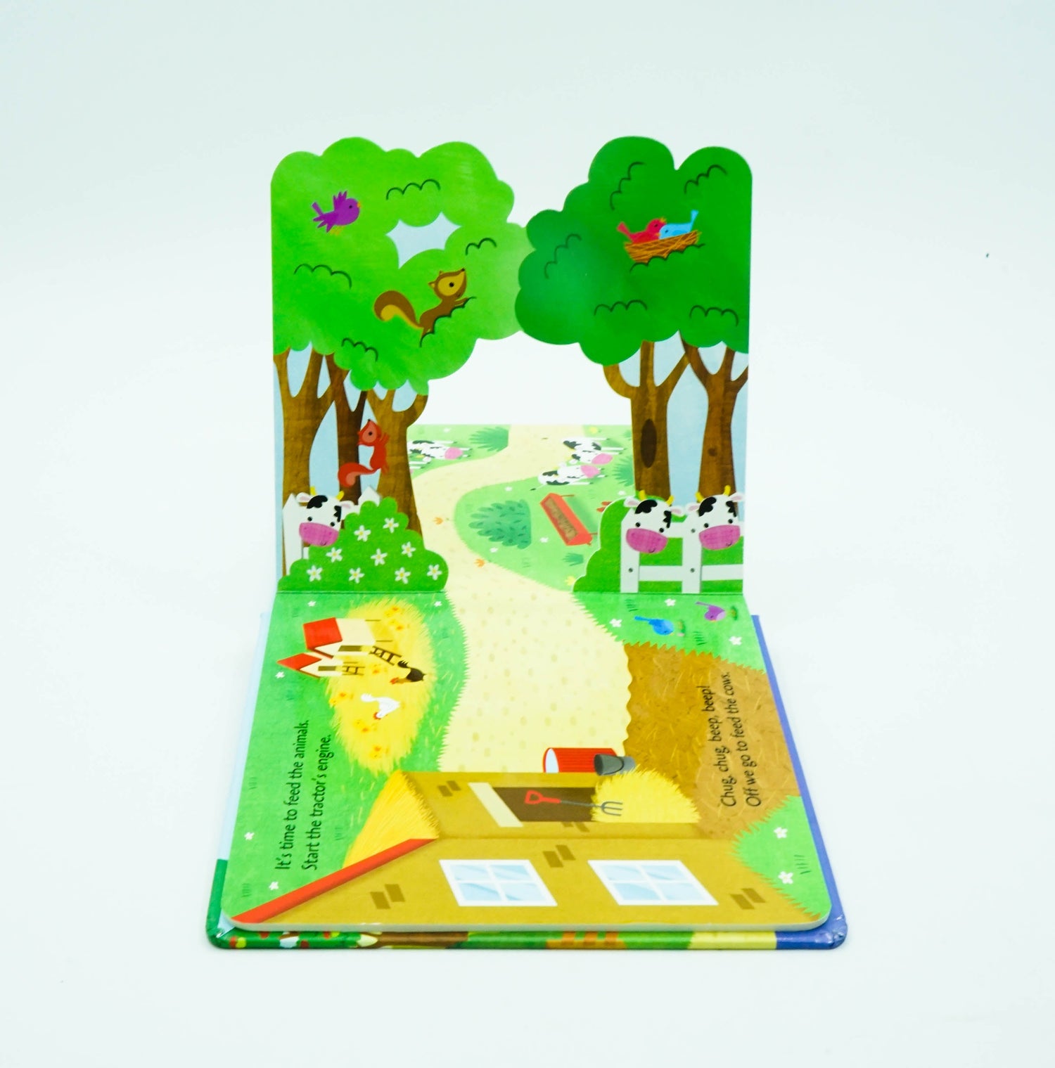 Push and play your way through the story in this fun, interactive board book. Push out the tractor play piece on the front cover and follow the road through the eight pop-up scenes where you'll meet lots of friendly farm animals.