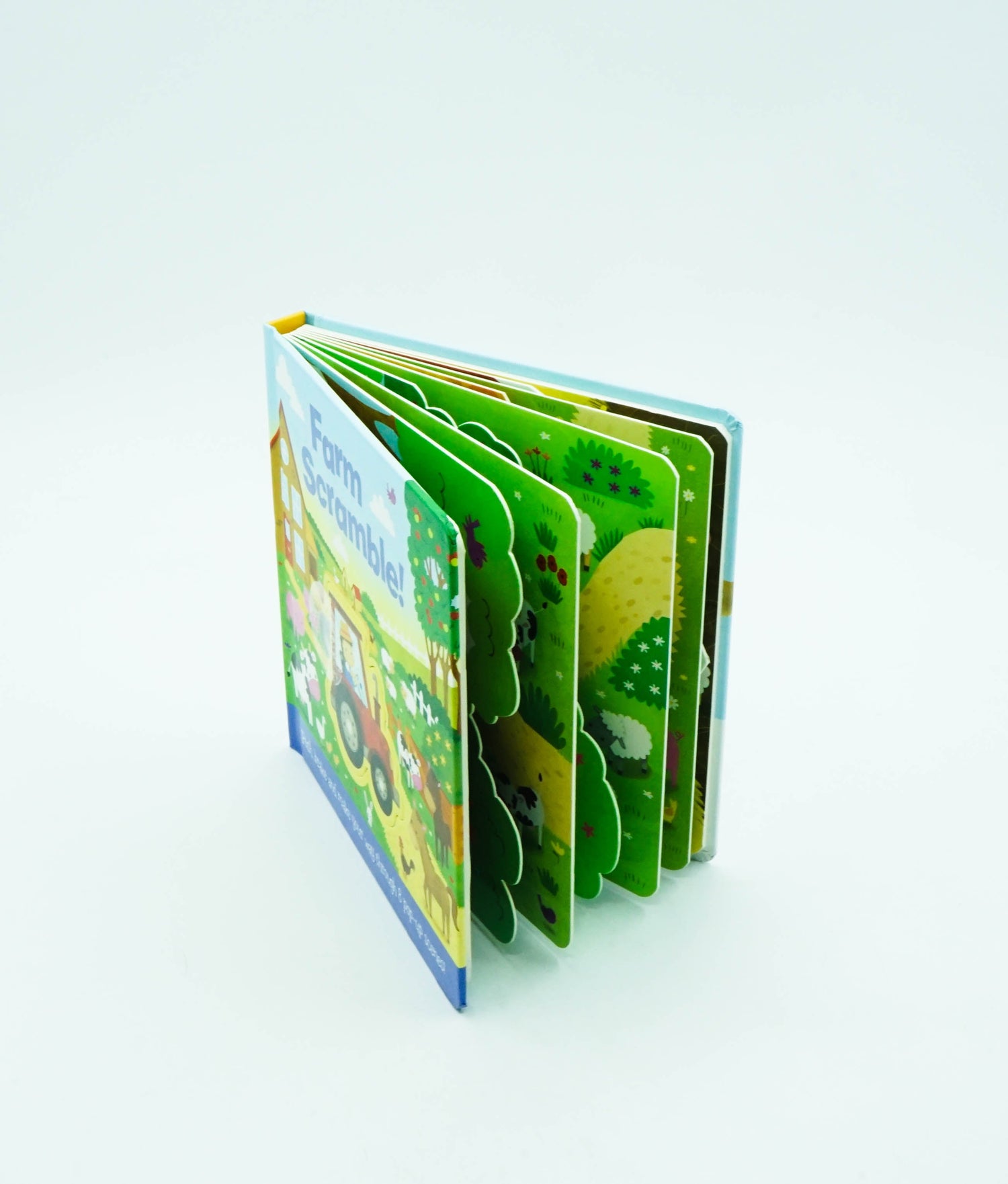 Join the farmer for a busy day on the farm and spot favourite animals along the way!