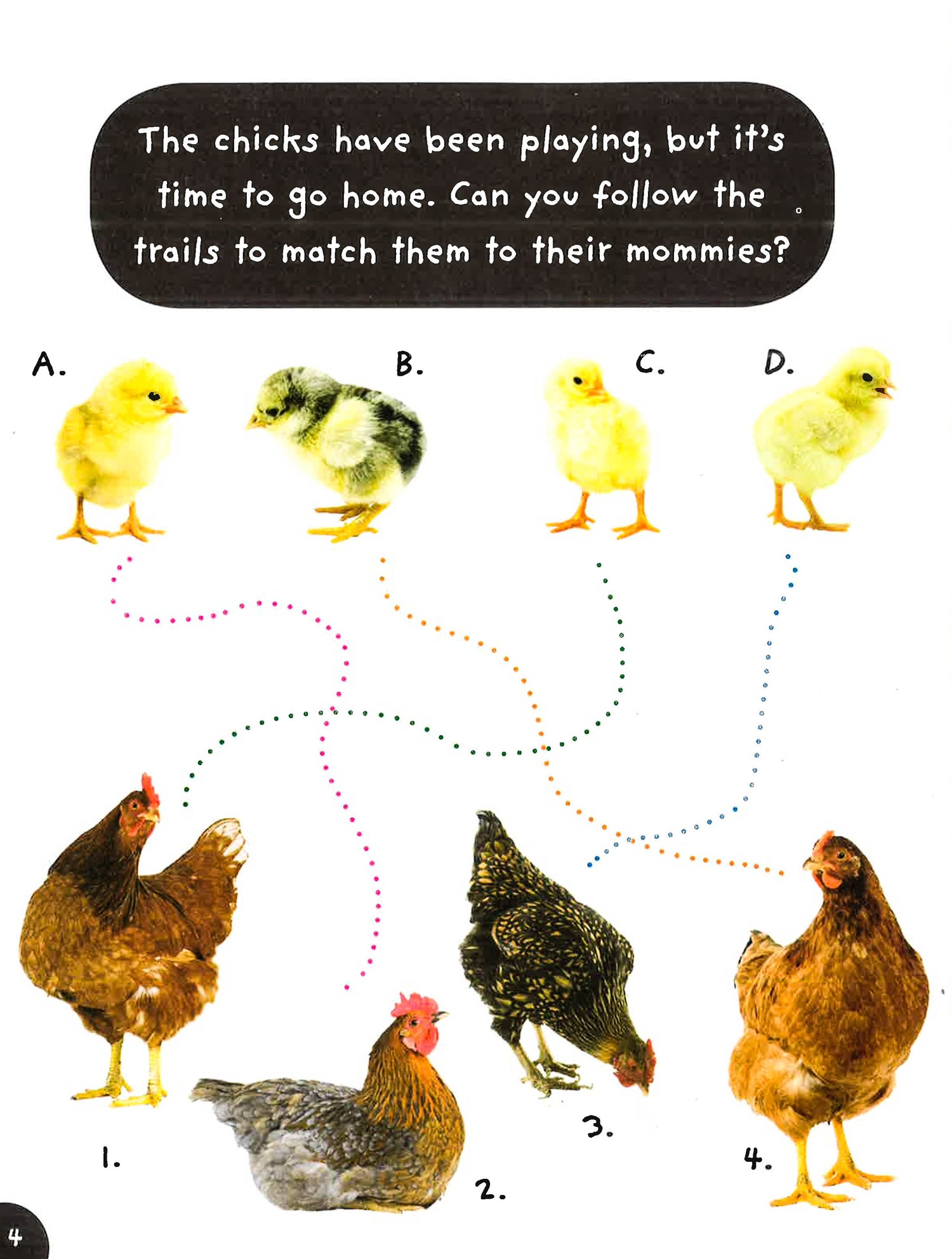 Children will love learning about life on the farm with this engaging book! Simple, illustrated scenes prompt young readers to connect the dots, spot the differences, complete the drawings, and much more. Colorful photographic stickers help to develop creative thinking and vocabulary while adding to the fun!