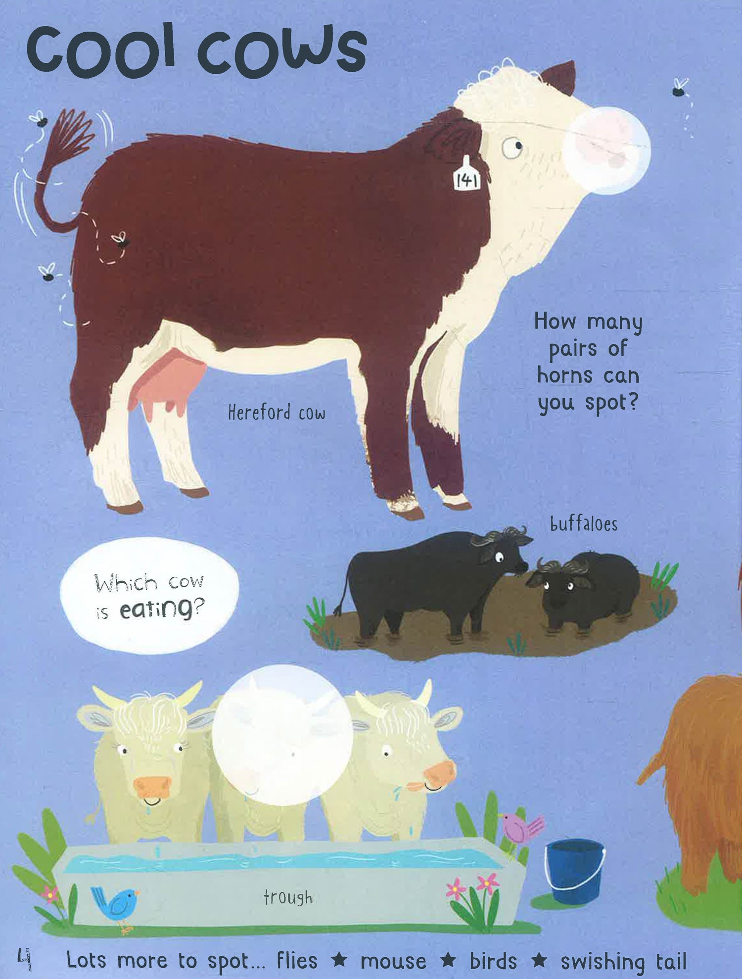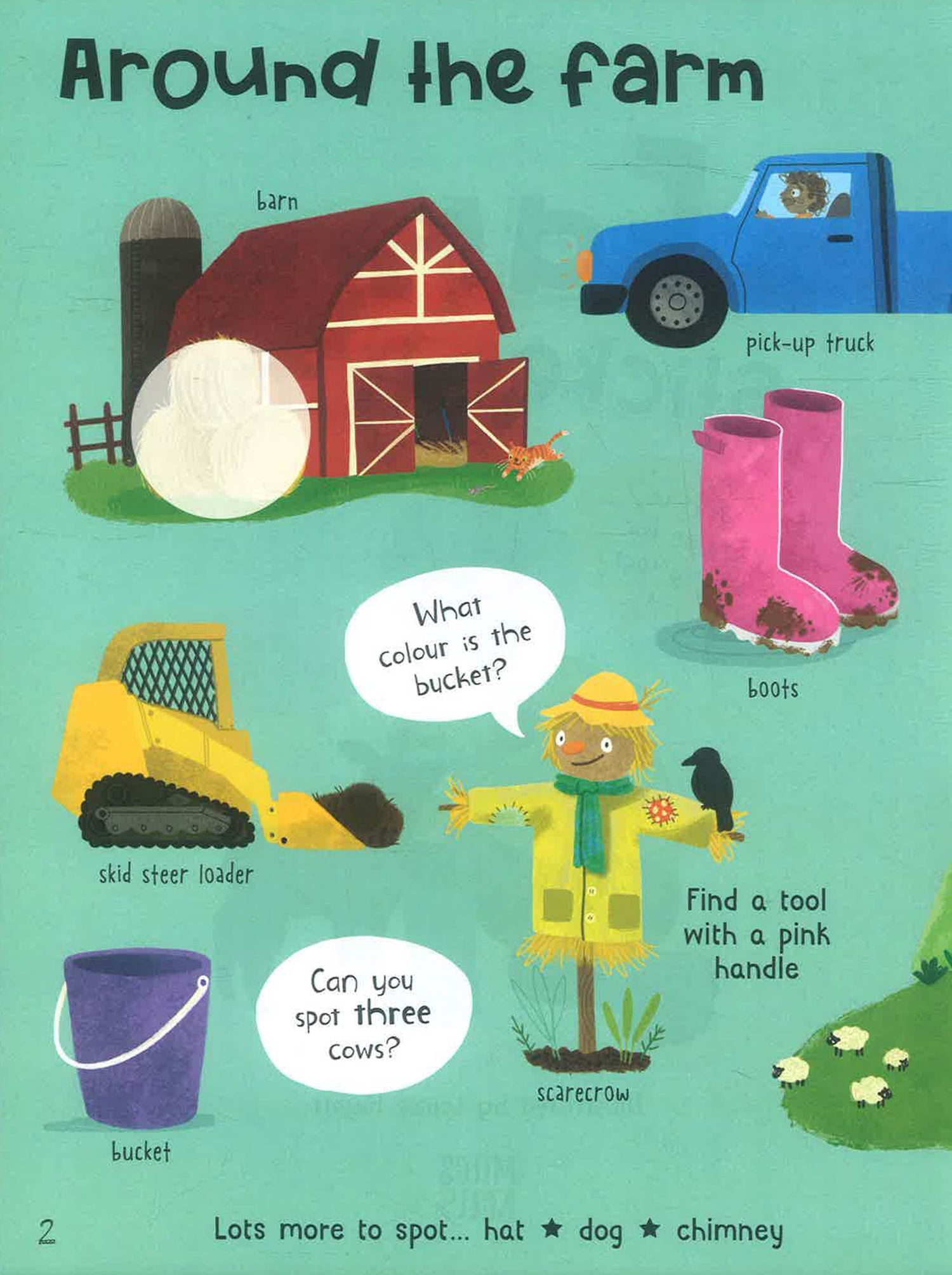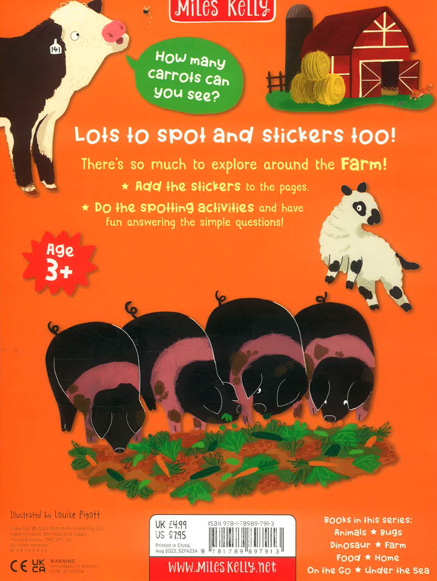 Inside the vibrant pages of this book, your child will immerse themselves in the charming world of farm life. From the friendly farm animals to the mighty machines and essential farm objects, each double-page spread is themed to create an immersive farm experience. These pages aren't just colorful; they're filled with delightful spotting tasks that encourage children to explore and learn. As they navigate through these interactive challenges, kids will eagerly search for stickers to complete the colorful scenes, adding their own creative flair to the farmyard.