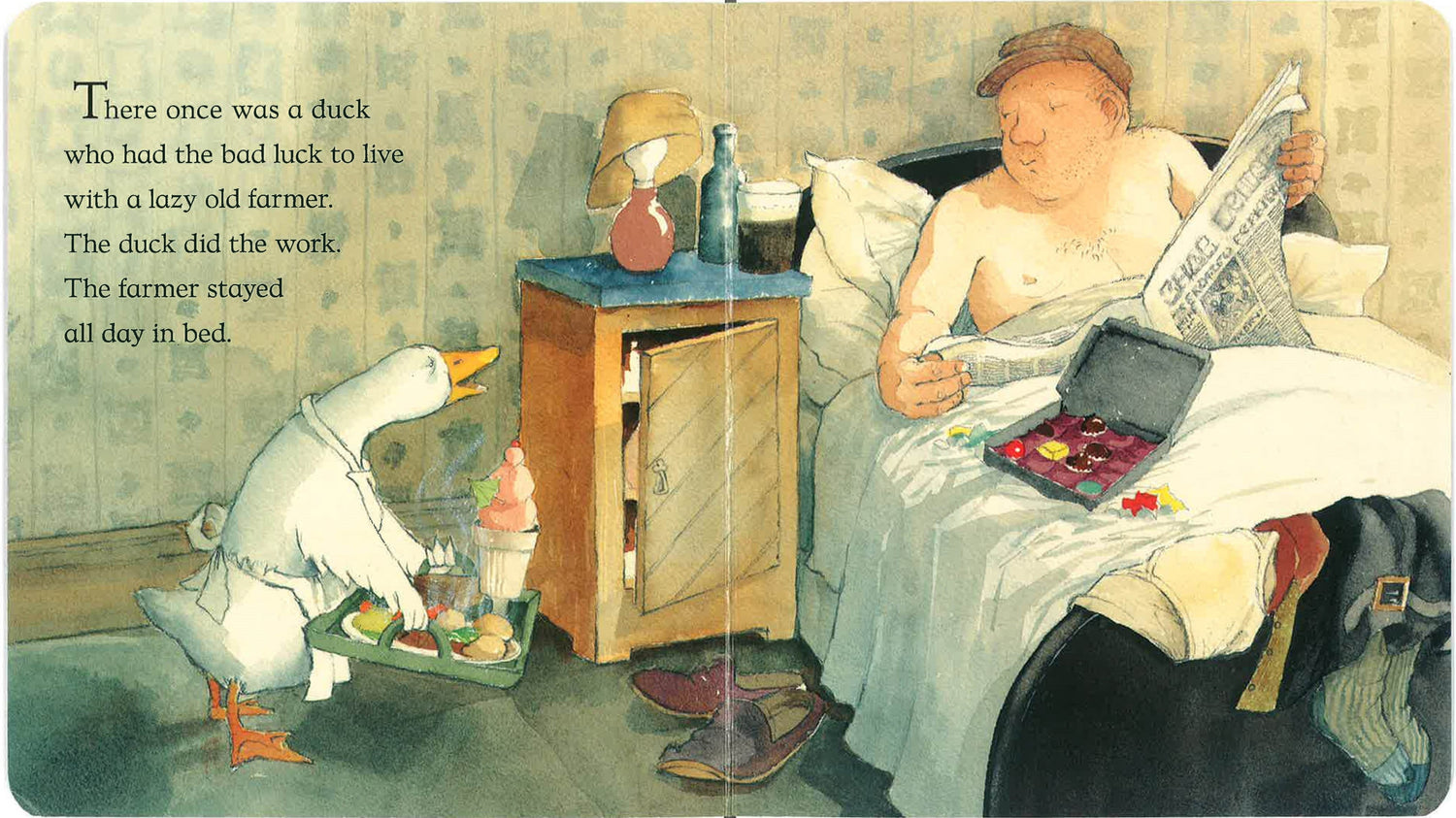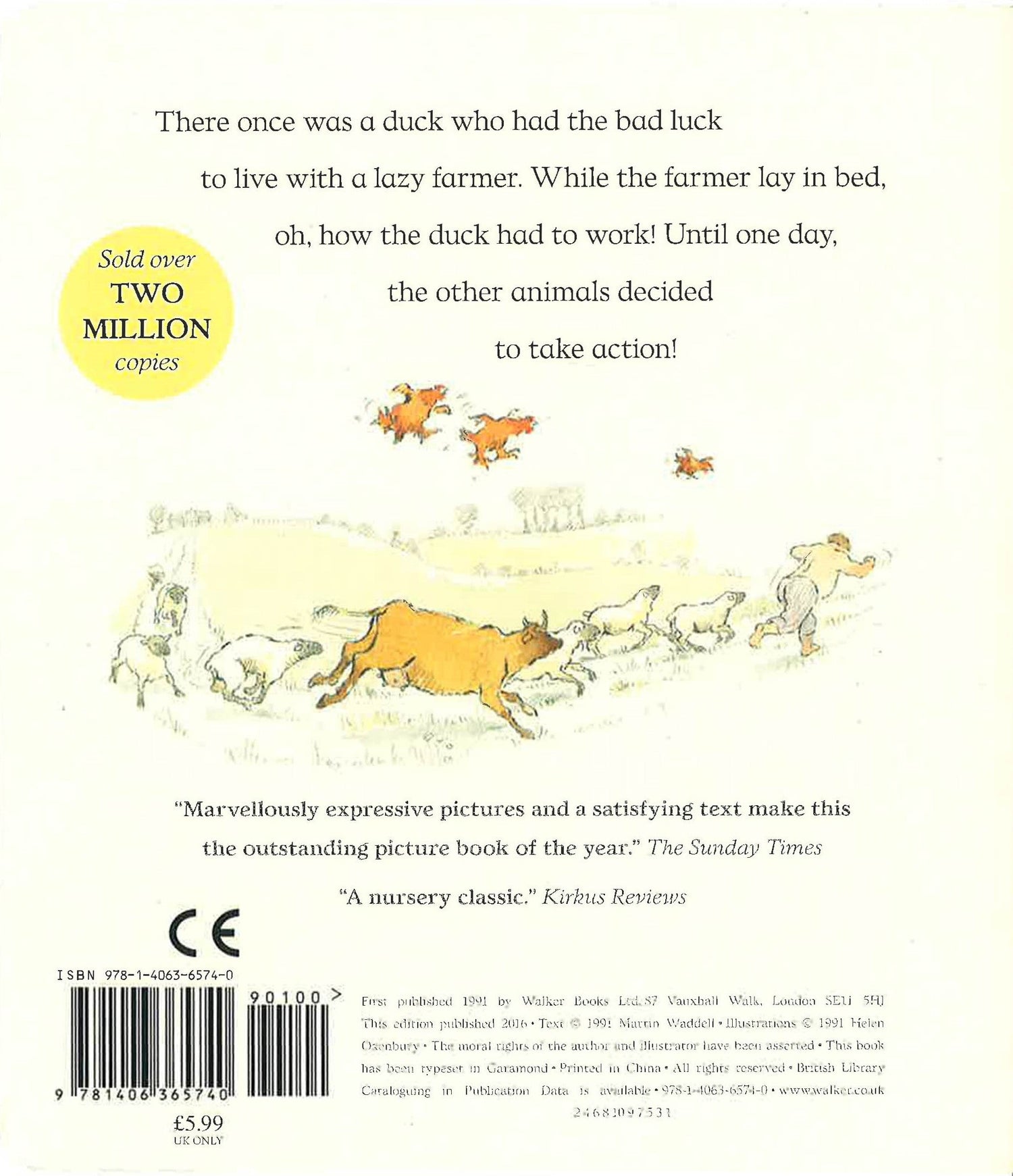 A hardworking duck is rescued from life with a lazy farmer in this beautiful 25th anniversary board book edition of an award-winning classic.A stunning 25th anniversary large board book edition of a picture book classic, this is the story of a hardworking duck, who has the very bad luck of living with a lazy farmer. The duck cooks and cleans, tends the fields and cares for all the other animals on the farm - and all while the famer lies in bed! Oh, how the duck has to work! That is, until the day the other animals decide to take action, and come to the rescue with a simple, but heroic plan... Highly commended for the Kate Greenaway Medal and the winner of a British Book Award, this tale of farmyard friendship and justice is as powerful and as charming as ever, and is from two of the most celebrated picture book creators of all time - Owl Babies author, Martin Waddell, and Bear Hunt illustrator, Helen Oxenbury.